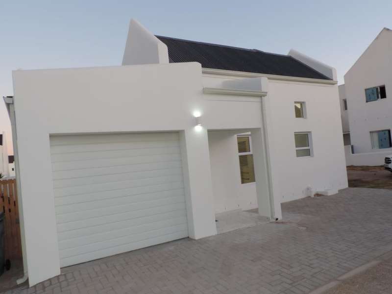 Modern Home in the quaint village of Lampiesbaai Welcome to your very own home where unique and modern living meet the beauty of the beach. A modern kitchen opens to an open plan living area where the exposed trusses add a touch of architectural detail and provide a sense of spaciousness. The lounge and dining area open onto a spacious patio, complete with a built-in braai for entertainment. Cozy up on chilly evenings in front of the warm fireplace, or take a leisurely stroll to the beach less than a kilometre away. This home features 2 bedrooms, each with its own en-suite bathroom with shower and built-in cupboards. The clean lines and modern design of this home are inspired by the Lampiesbaai Mediterranean look, adding to its charm and character. You'll also enjoy the convenience of a garage for one car, as well as space to create undercover parking. There is also a lovely little secure and private park adjacent to the property where you can sit and relax in a garden where you are likely to see some tortoises and small buck and an abundance of bird species. Located in a comfortable crescent, this property is situated in the tranquil and picturesque St Helena Bay - the first place where Vasco da Gama set foot on South African soil on 7 November, 1497. With its fishing village atmosphere and rural coastal feel, there's not a single traffic light to be found. You'll love the peaceful and relaxed lifestyle this area offers, surrounded by St Helena's sweeping bay and the beautiful Western Cape coastline. Prepaid electricity, lets you have one less thing to worry about. Whether you're looking for a relaxing beach escape or a stylish and functional living space, this home has all you need. Come and see for yourself why this unique and modern home in Lampiesbaai is one-of-a-kind.
