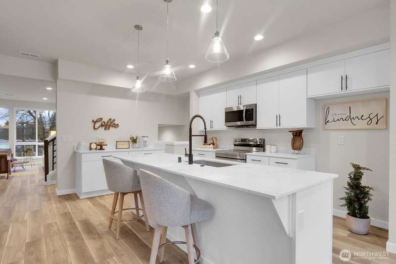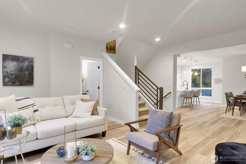 New Community Hydra – Unit A2 | New 12-unit townhome community by Landsverk Quality homes. Located in the top-rated Mukilteo School District all schools 7+ out of 10 school ratings. Featuring modern finishes, open great room layout, covered deck, and 2-car garage. This 4BD/3BA townhome offers a sleek kitchen with quartz counters. Primary suite with dual sinks, plus 2 bedrooms upstairs with a full bathroom. Main-level bedroom with ¾ bath—perfect for guests. Buyer must register broker on first visit. Photos from similar model.
