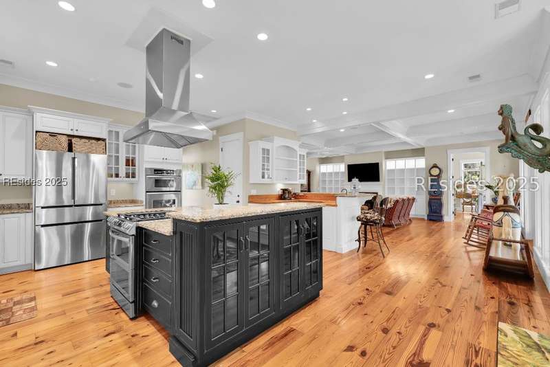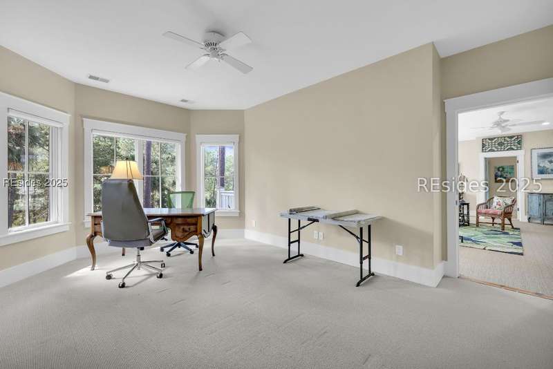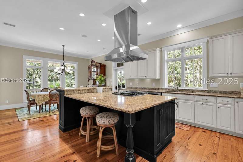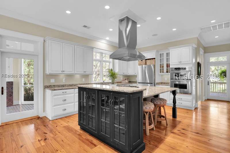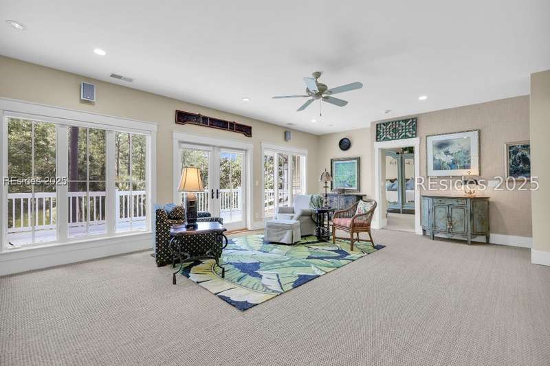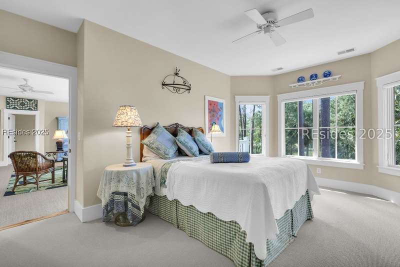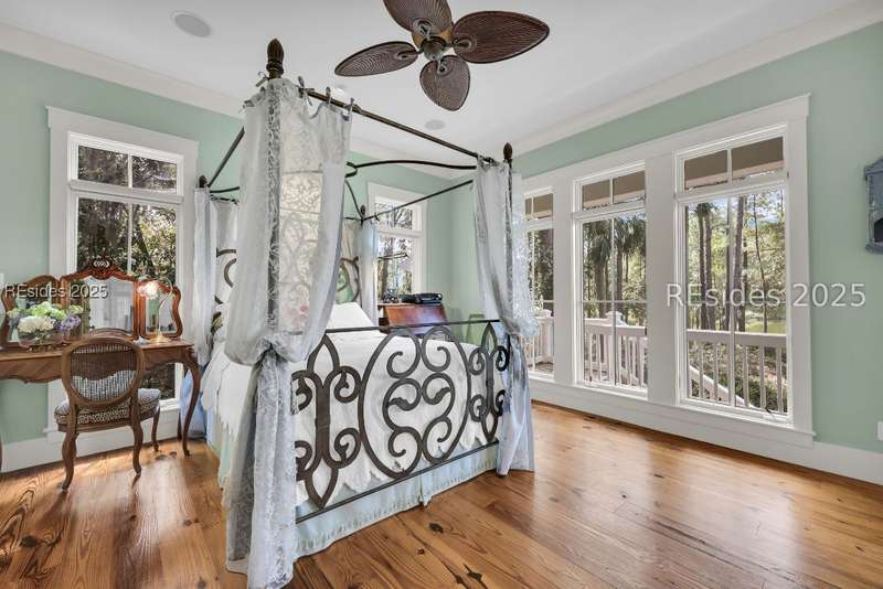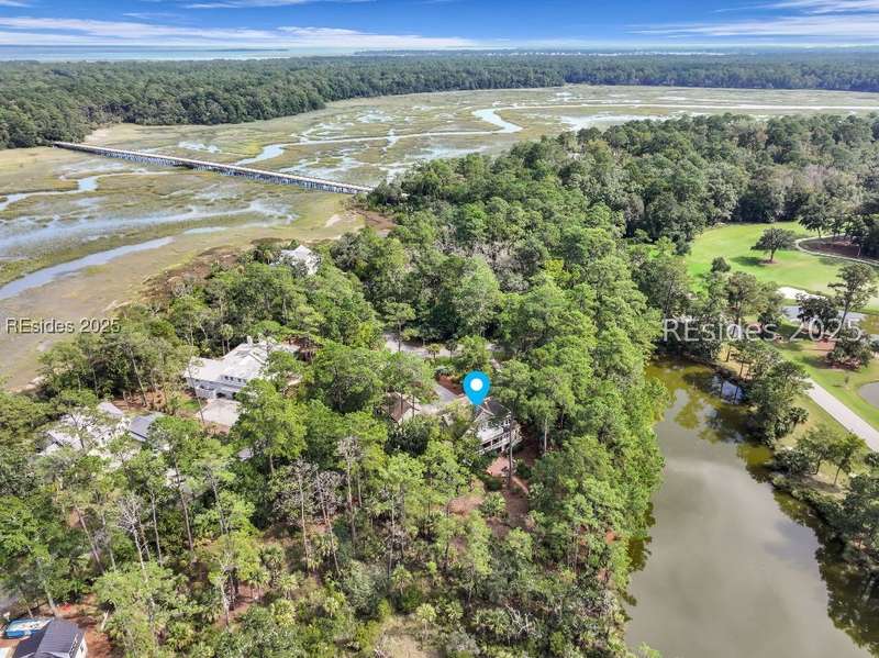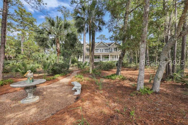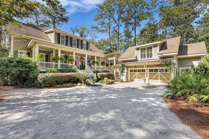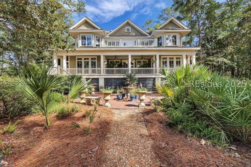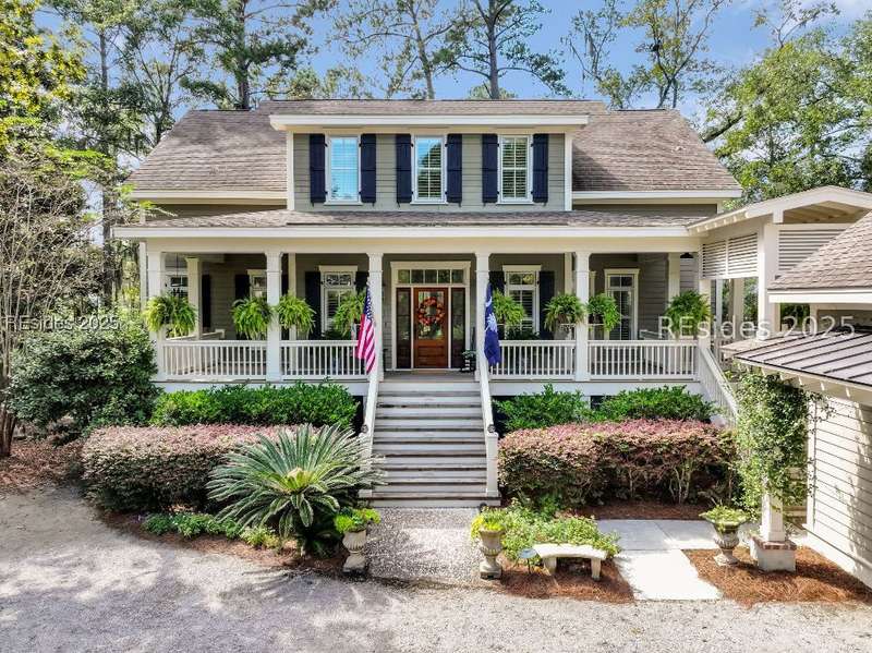 Welcome to Callawassie Island, a private gated wildlife sanctuary community. Drive across the causeway and enjoy the tidal marsh with Spartina grass, exquisite waterfowl, and occasionally playful dolphins. Enter the island with Spanish moss draped old live trees and world class golf views. Arrive at 3 Woodstork Watch an estate-style home with privacy, panoramic views and unparalleled Low Country lifestyle. Experience the WOW factor when you open the front door and see your pond and marsh views framed in tall windows and doors inviting you to the covered porch. 347 feet of waterfront! Enjoy entertaining in your gracious great room with fireplace, large wet bar, chiefs delight kitchen with 2 ovens, large island, and new appliances. Choose dining inside surrounded with tall windows or on the large porch where you'll eat outside, both with awesome views. Relax in your primary suite on the main floor with tall windows for observing wildlife. Upstairs the large balcony captures a stunning