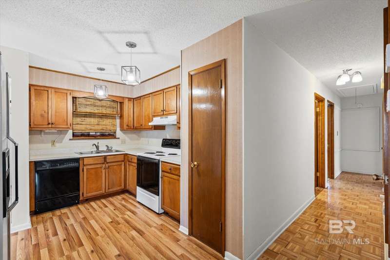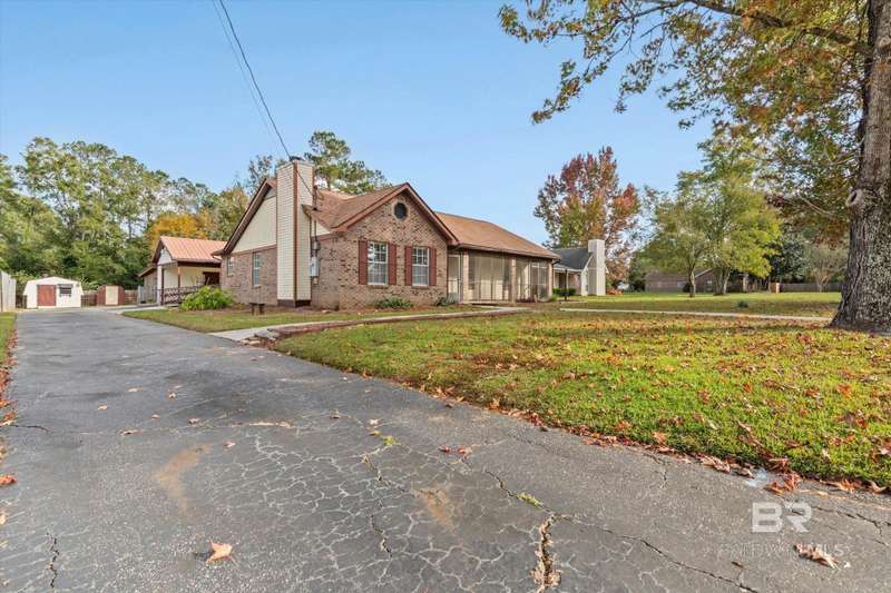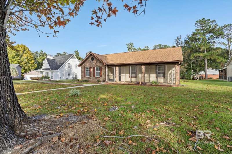 This beautifully maintained 3-bedroom, 2-bath brick home is tucked away in a quiet Fairhope subdivisionoffering comfort, convenience, and charm all in one. The spacious living room features vaulted ceilings, creating an open and inviting atmosphere. A separate dining area flows seamlessly into the kitchen through a convenient pass-through window. Enjoy peaceful mornings or relaxing evenings on the screened-in back porch overlooking the private backyard. Additional features include a detached carport, a storage/workshop building, and an RV pad. Located in the heart of Fairhope, this home is just minutes from local schools, shopping, and downtown attractions.