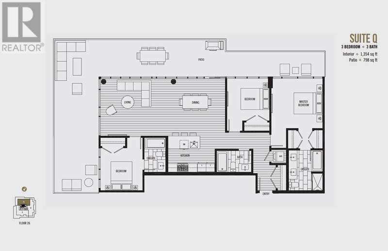 GOLD HOUSE PENTHOUSE! This gorgeous 3 bedroom 3 bathroom PENTHOUSE suite spans 1354sqft interior living space and comes with an impressive 798sqft warp around patio, featuring unparalleled and unobstructed views from every corner of the home. The suite boasts nearly 13 feet ceilings, high-end Bosch kitchen appliances and custom Italian Armony Cuvine soft-closing cabinets, while the spa-like bathrooms features showers with semi-frameless glass doors, polished quartz and marble countertops. Over 30,000 sqft of indoor/outdoor luxurious amenities including an expansive party room with private dining and kitchen, state-of-the-art fitness centre and much more. This world class suite also had 3 side by side parking and one storage locker! Open House April 27, May 3 and 4, 2-4pm. (id:58403)