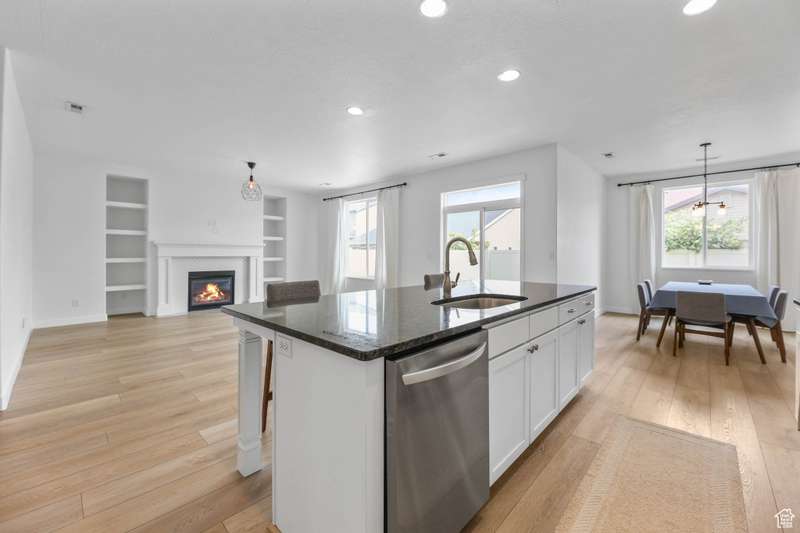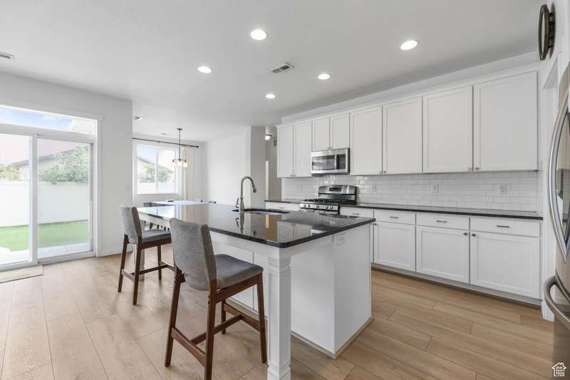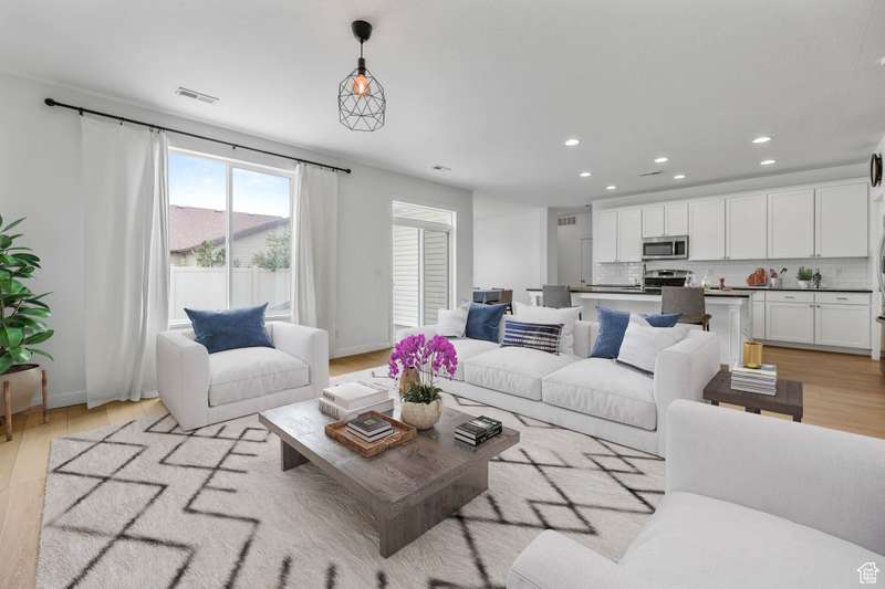 This is a really nice home in excellent Condition! Modern open floor plan with a beautiful kitchen & oversized island perfect for entertaining. Very light & bright! Large rooms throughout with a great primary suite! Tons of storage in closets & the oversized garage. The loft area can be used as a second family room or an office. All new within the last 2 years: All flooring, hot water heater, water softener, dishwasher, ceiling fans, blinds & some recessed lighting. The backyard is maintenance-free with artificial turf! The low-cost HOA fee includes clubhouse, gym, playground, swimming pool & spa! This home is extremely clean! Main floor bedroom does not have a closet. All information is deemed reliable but is not guaranteed and should be independently verified.