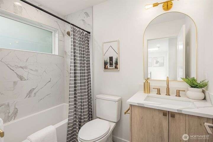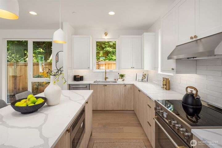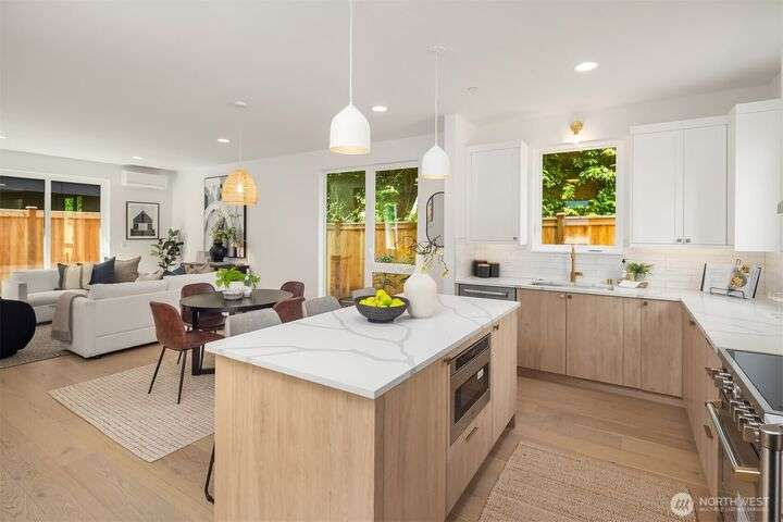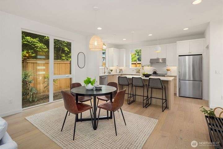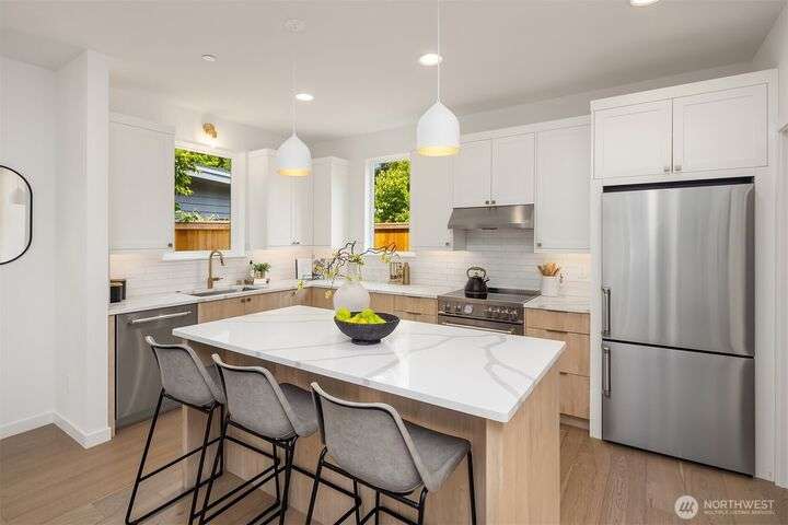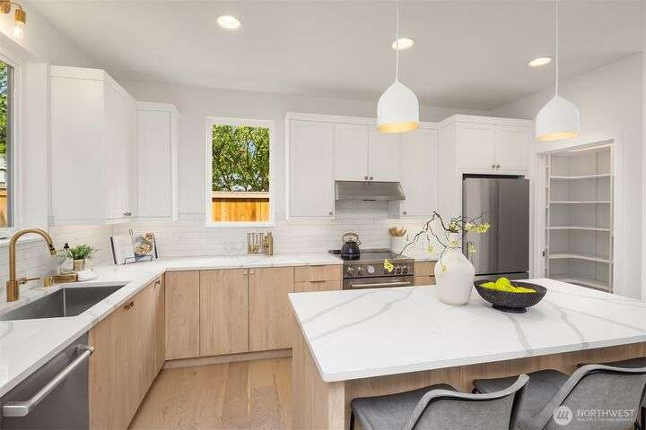 From local builder, Red-Bud Properties, comes this fantastic new construction cottage in North Rose Hill. Enter into light-filled open-concept main floor. Home lives large with well-appointed kitchen island, complete with bar seating plus find ample storage in the walk-in pantry. Main floor continues with space for dining table and nice-sized living area. Sliders open to private patio and fenced yard. Upstairs, you'll find the primary suite with spacious walk in closet and private bath. Secondary bedroom, additional full bath & laundry complete this level. Off-street designated parking. Exceptional location with easy access to I-405 and close proximity to Juanita Bay & Beach Parks plus Totem Lake Village.