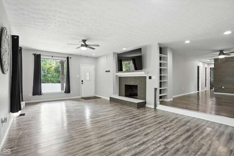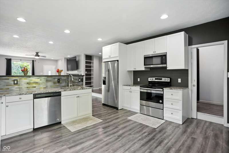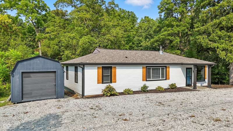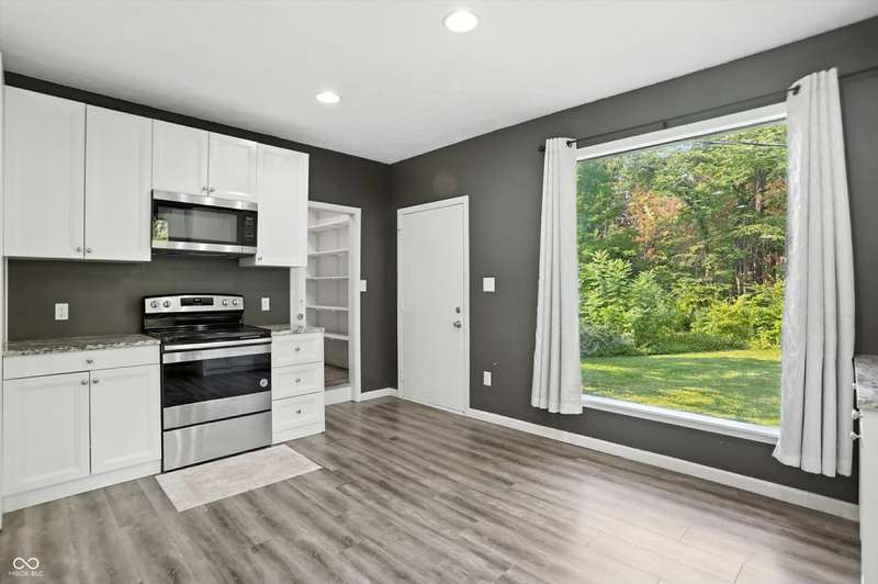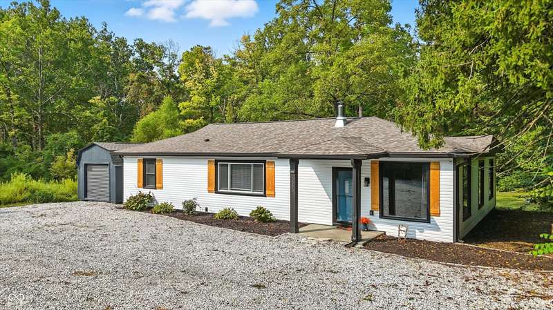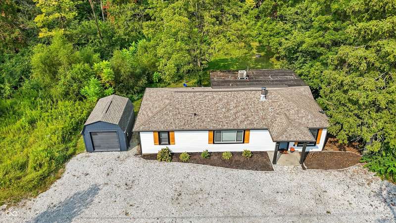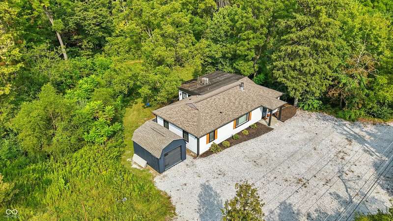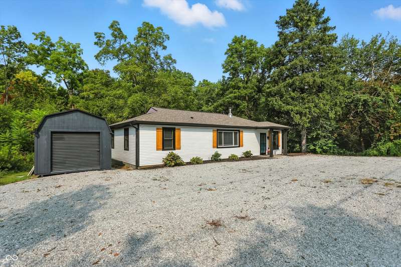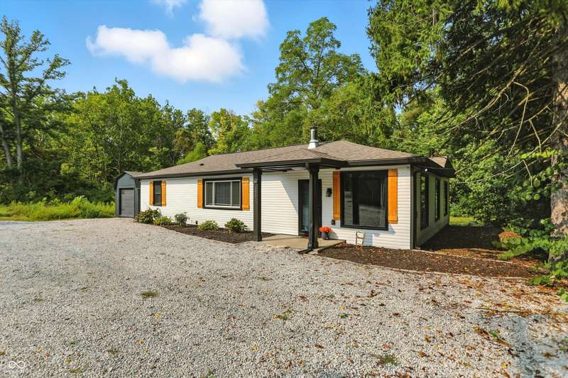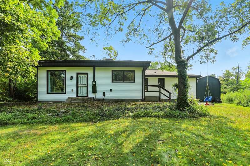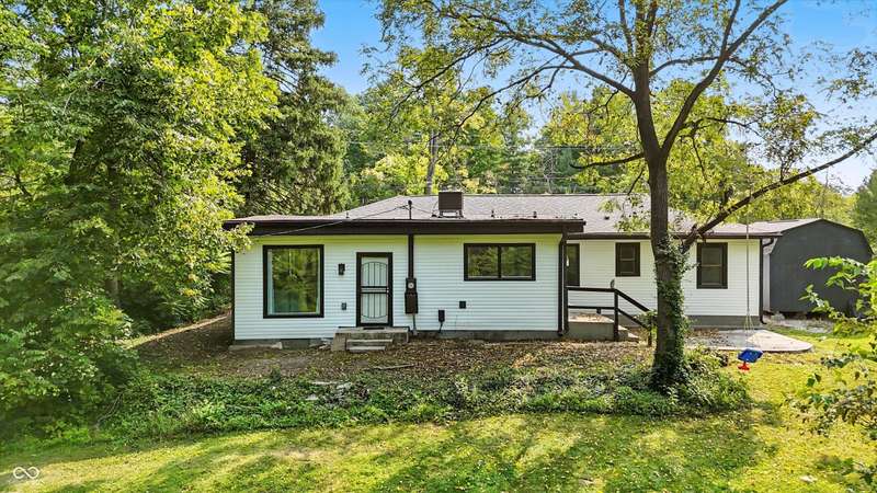 Nestled at 5550 N Franklin RD, INDIANAPOLIS, IN, this all electric single-family residence offers an attractive property in great condition, presenting an opportunity to embrace comfortable living within a desirable residential area. Imagine evenings spent in the living room, the warm glow of the fireplace casting dancing shadows across the built-in shelves, creating a cozy retreat from the world. The kitchen is ready for culinary exploration, featuring a pantry, white cabinets and granite countertops that complement the stylish backsplash, while the kitchen peninsula offers a spot for casual dining. The primary bedroom, complete with an ensuite bathroom featuring a subway tiled walk in shower, creates a private sanctuary within the home. All three bedrooms have brand new carpet. The rest of the house has Vinyl Plank flooring. Beyond the main living spaces, this property also includes a practical laundry room and a convenient shed, offering additional storage and utility. A woods view enhances the property, offering a connection with nature. Home has lots of windows to enjoy Mother Nature. With 1833 square feet of living area on a 1.16 acre lot, this three-bedroom, two-bathroom home, built in 1969 but updated in 2020, offers a unique opportunity to craft a lifestyle of comfort and tranquility. Hard to believe this piece of the country close to the amenities of the city. Remodeled in 2020 and new AC unit in 2024 as that was not replaced in 2020.