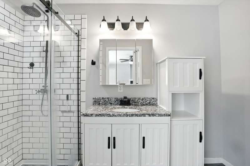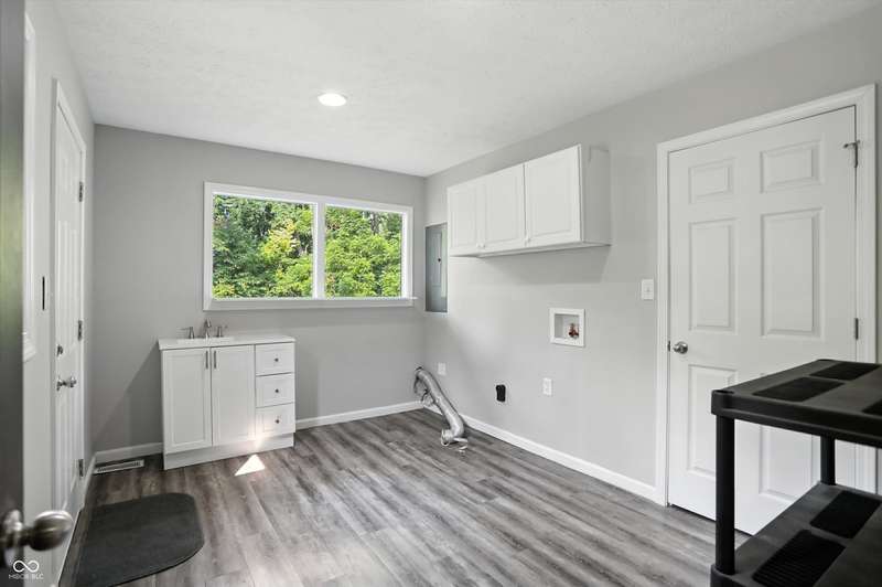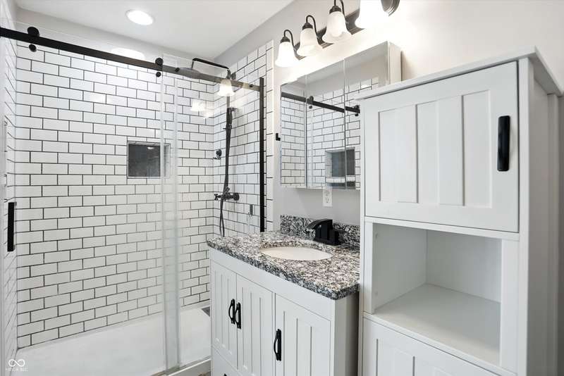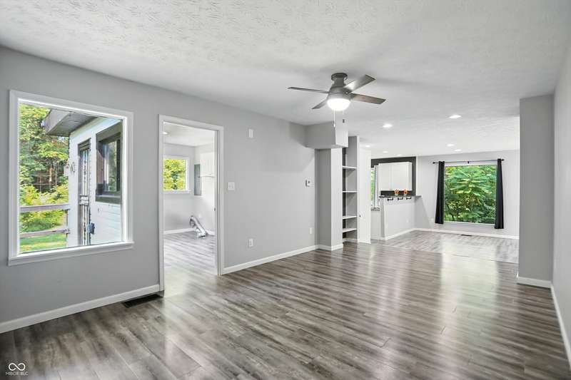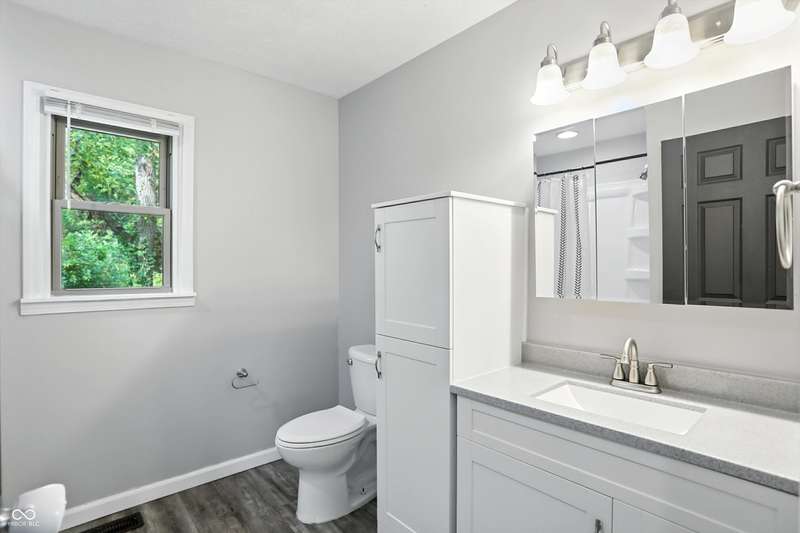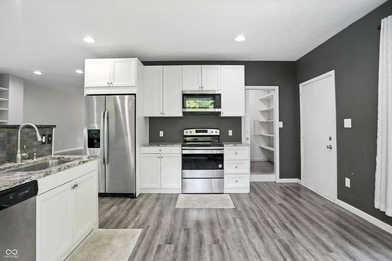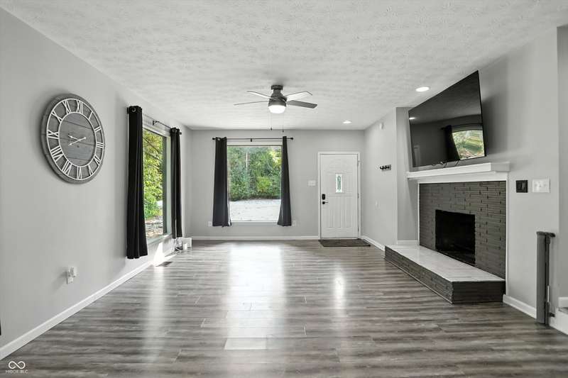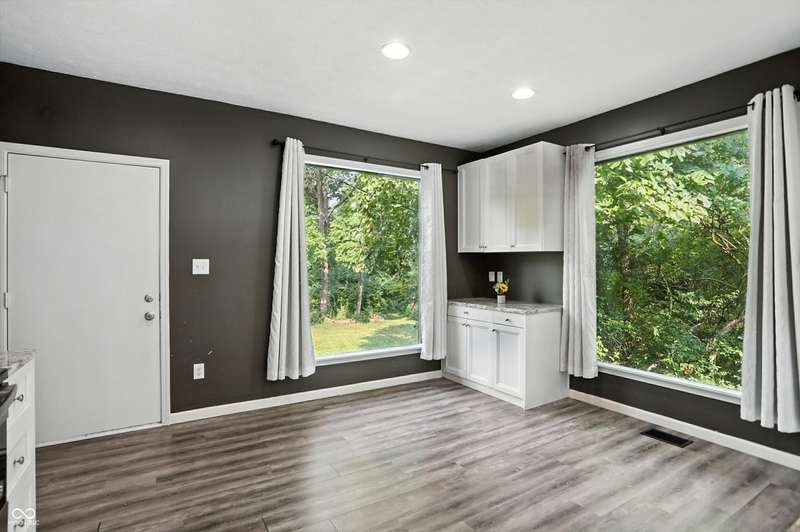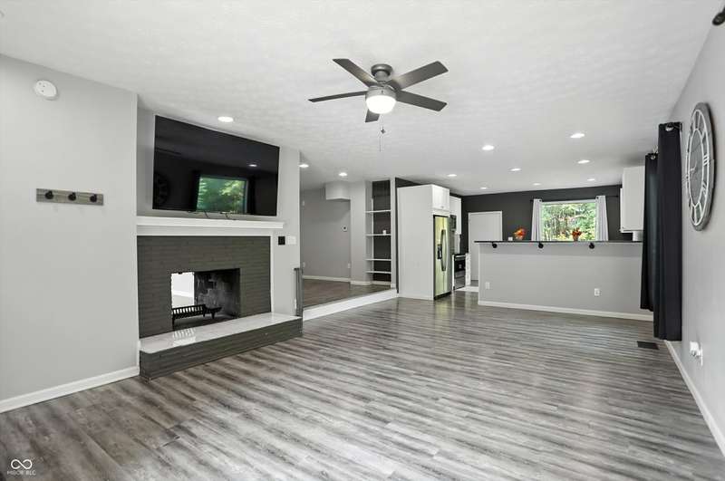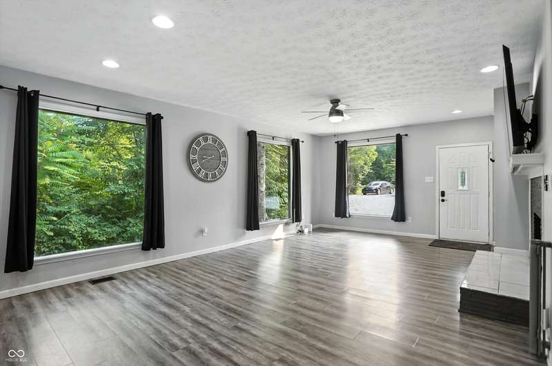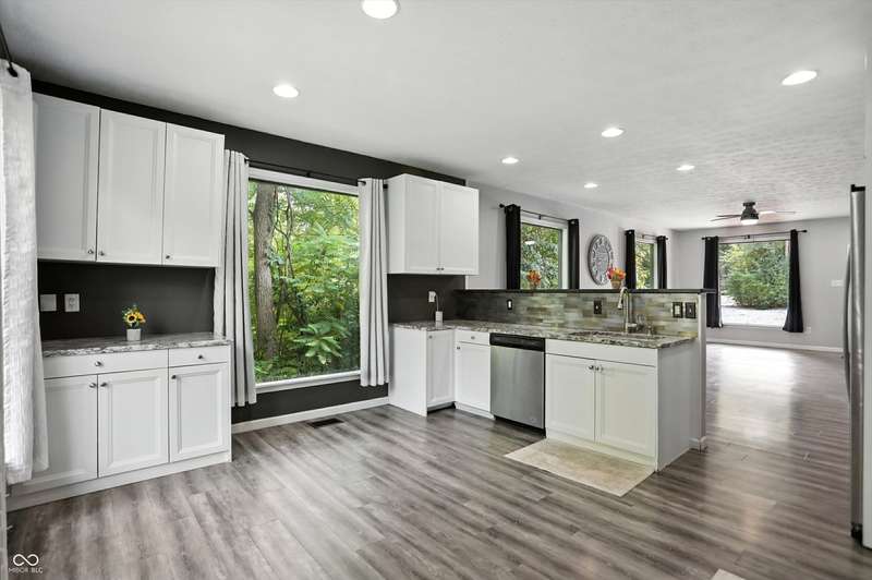 Nestled at 5550 N Franklin RD, INDIANAPOLIS, IN, this all electric single-family residence offers an attractive property in great condition, presenting an opportunity to embrace comfortable living within a desirable residential area. Imagine evenings spent in the living room, the warm glow of the fireplace casting dancing shadows across the built-in shelves, creating a cozy retreat from the world. The kitchen is ready for culinary exploration, featuring a pantry, white cabinets and granite countertops that complement the stylish backsplash, while the kitchen peninsula offers a spot for casual dining. The primary bedroom, complete with an ensuite bathroom featuring a subway tiled walk in shower, creates a private sanctuary within the home. All three bedrooms have brand new carpet. The rest of the house has Vinyl Plank flooring. Beyond the main living spaces, this property also includes a practical laundry room and a convenient shed, offering additional storage and utility. A woods view enhances the property, offering a connection with nature. Home has lots of windows to enjoy Mother Nature. With 1833 square feet of living area on a 1.16 acre lot, this three-bedroom, two-bathroom home, built in 1969 but updated in 2020, offers a unique opportunity to craft a lifestyle of comfort and tranquility. Hard to believe this piece of the country close to the amenities of the city. Remodeled in 2020 and new AC unit in 2024 as that was not replaced in 2020.