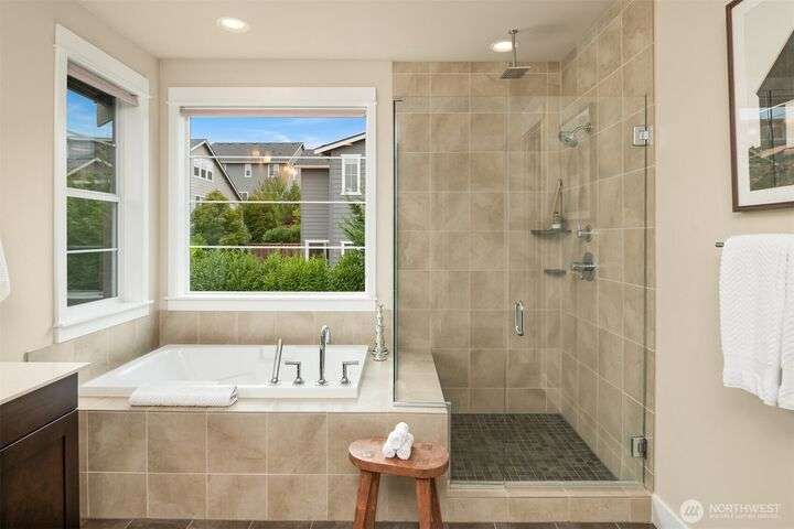 Move into this stunning three-story home in Redmond’s sought-after Education Hill. Built in 2018, this smart, multi-generational home features a main floor guest bedroom and adjacent bathroom. Chef’s delight in the gourmet kitchen with Thermador appliances, ceiling height cabinetry, an expansive pantry, quartz counters and grand center island. Large primary bedroom w/ spacious ensuite bath complete with a walk-in closet and soaking tub. Hardwoods throughout main floor. Bonus 3rd floor with mini-split A/C can be used as a flex office/workout/play space. The outdoor oasis w/ an abundance of garden blooms throughout the year, large dog door for fido, a gas stub for your grill and artificial turf exceeds your outdoor play & entertaining dreams!