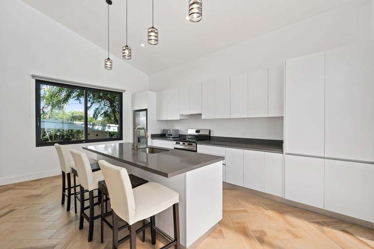 The kitchen is a true haven for culinary enthusiasts, with generous counter space and custom cabinetry designed to meet all your cooking and entertaining needs. Whether preparing a gourmet meal or a casual beachside barbecue, this kitchen will inspire creativity and convenience.