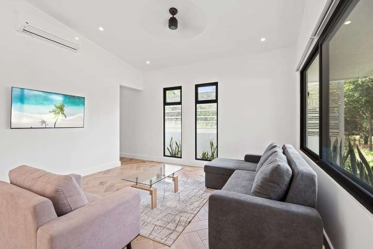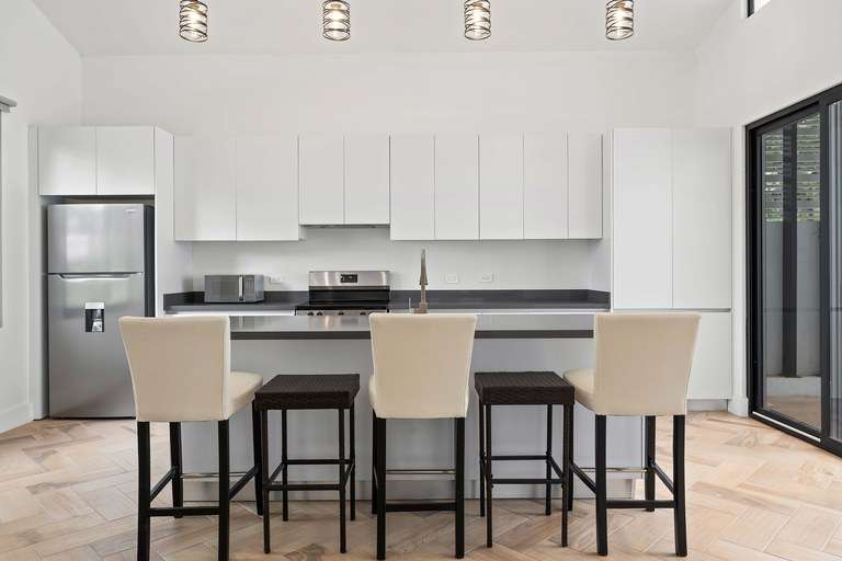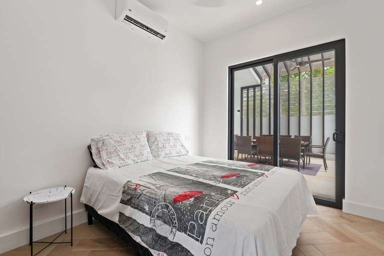 The residence is fully air-conditioned, providing optimal comfort year-round with state-of-the-art wall units. Available fully furnished, every detail has been curated to create an inviting and stylish atmosphere. The property is equipped with top-tier appliances, including a sleek refrigerator, a professional-grade stove, and a convenient washing machine.