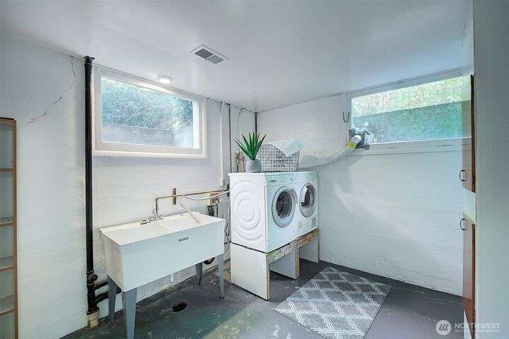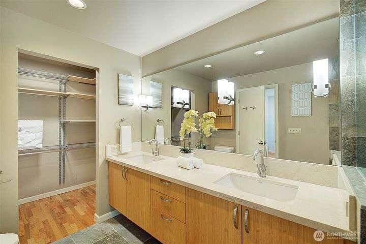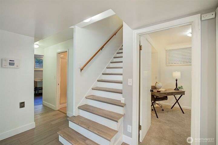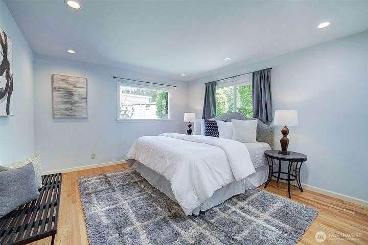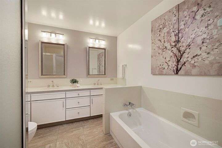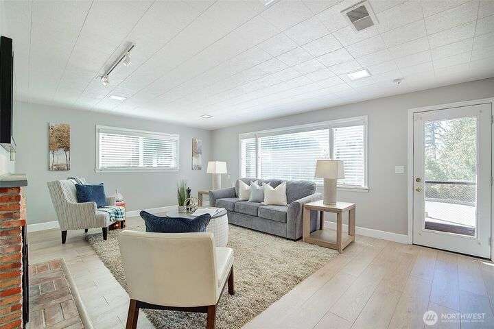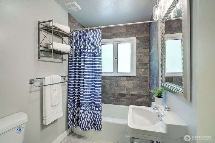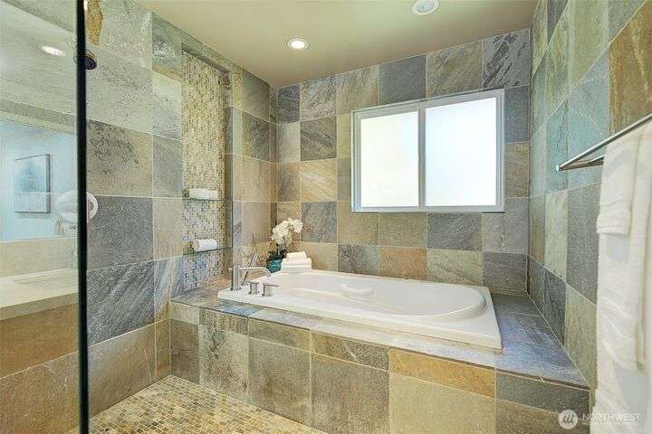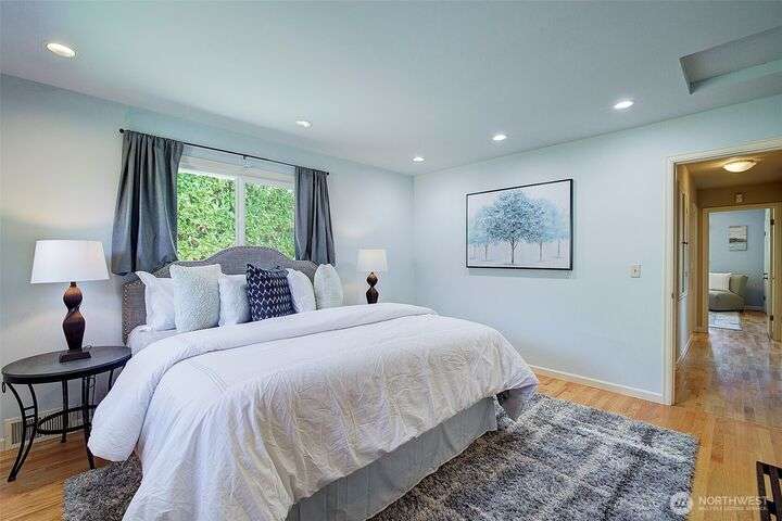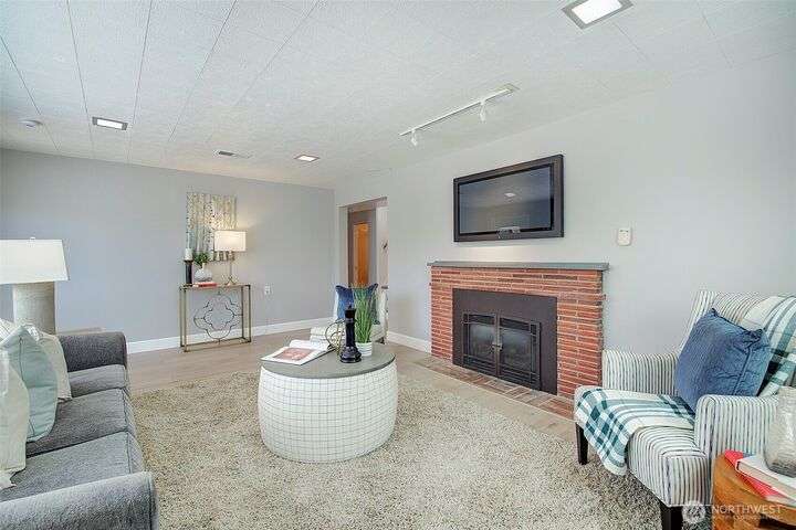 Discover timeless luxury in this private Broadview masterpiece with stunning Puget Sound & Olympic Mountain views. Nestled on a sprawling lot, this modern gem blends elegance w/serenity. Expansive panoramic windows, sleek hardwood floors, 2 gas fireplaces, tankless water heater, new deck paint, new garage door and a chef’s kitchen w/stainless steel appliances & prep sink create the perfect setting for both daily living & stylish entertaining. The upper level boasts light-filled living spaces & 2 bdrms, incl. a spa-like primary suite w/custom closet, jetted tub, stone shower & dual vanities. The lower level offers a chic living area, 2 bdrms & a spacious laundry room. Located near shops, restaurants, schools, Carkeek Park & so much more!