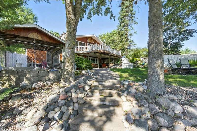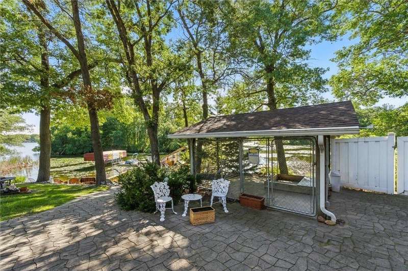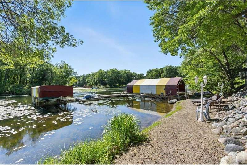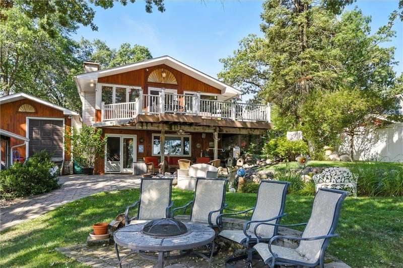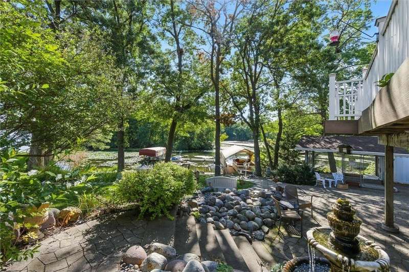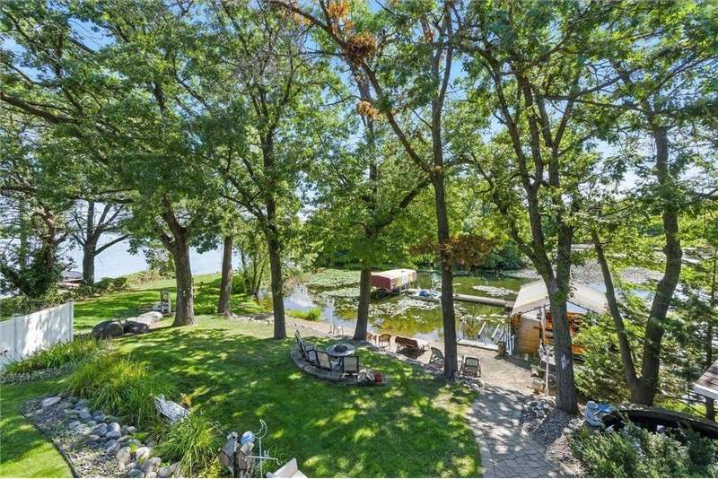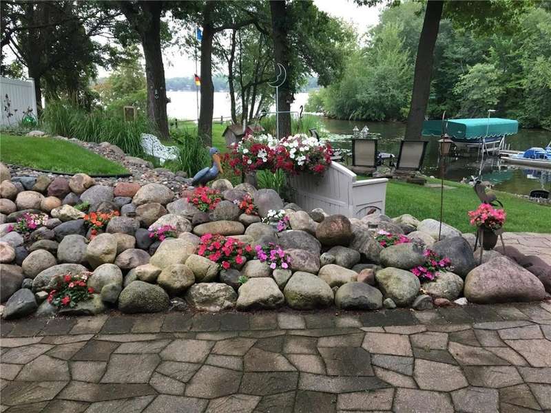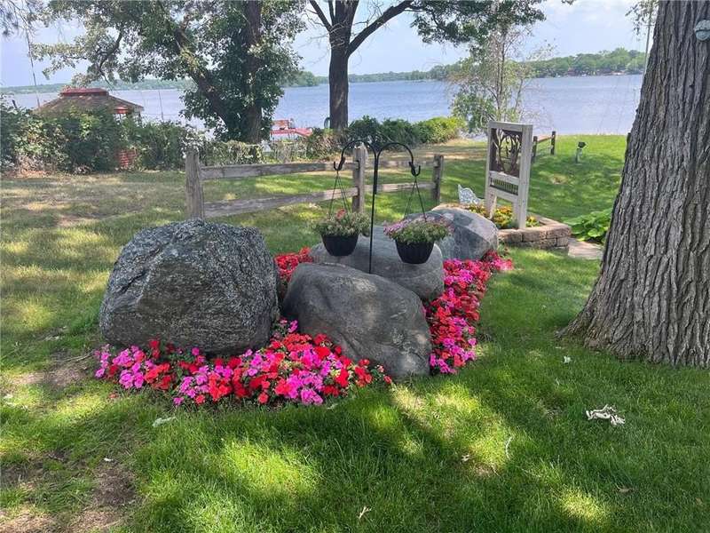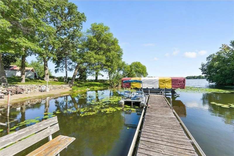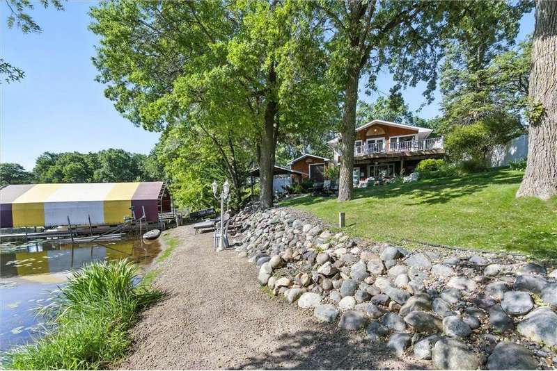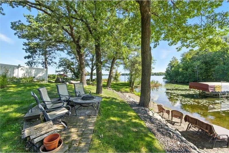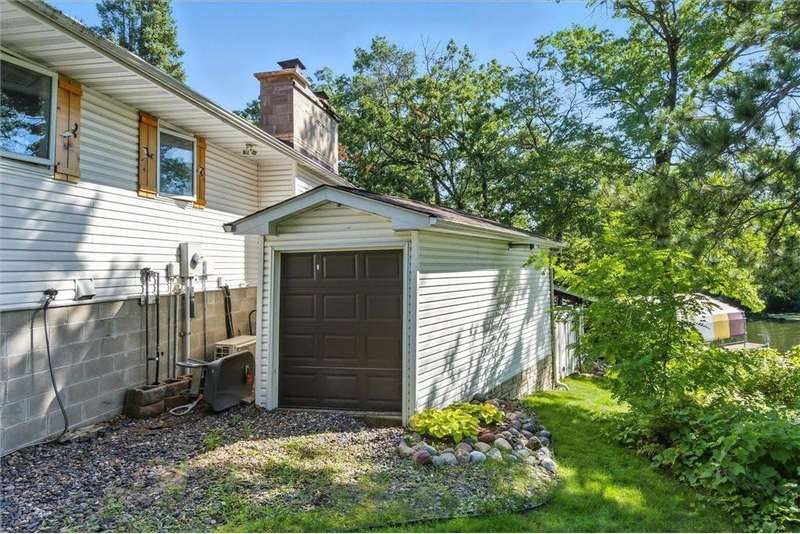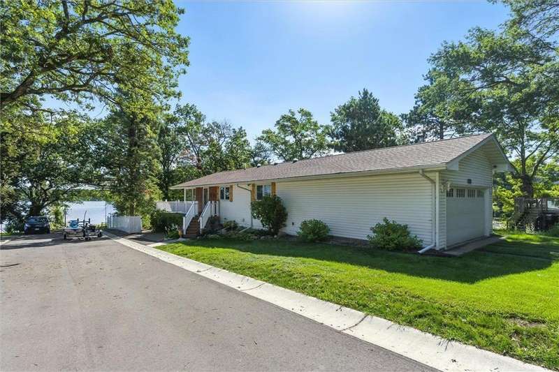 Beautiful lot on Lake Fremont with 175 feet of shoreline. Located on the main lake but siding to the safe harbor of the channel with the dock system, boat slip and boat lift that can stay in year round, for the best of both worlds. Sandy beach, tons of perennial gardens and a must see stone patio and stone steps that make visiting this yard and lake truly like a walk in the park. Boat, swim and fish in this fully recreational lake. This 1958 rambler was brought in to a new basement in 1998 and has been fully engineered to include incorporation a large stylish spiral stair to the lower level. an attached garage was built as part of this renovation in 1998. the seller has obtained a variance from the city so a new owner could build a 20 x 38 garage. The home is currently used as a 2 bedroom with the third used as an office/mudroom/guest room. One of the original bedrooms was also made into a dining room and wet bar area that enjoys beautiful views of the lake along with the living room and kitchen. The lake facing deck has a cantilevered balcony and under decking that creates a sheltered outdoor living space for gathering and grilling that starts with the outdoor patio which extends along a path to the sandy beach. Large storage shed currently used for snowmobile storage. Covered dog kennel. Must see property with so many transitional uses. Make it your own!