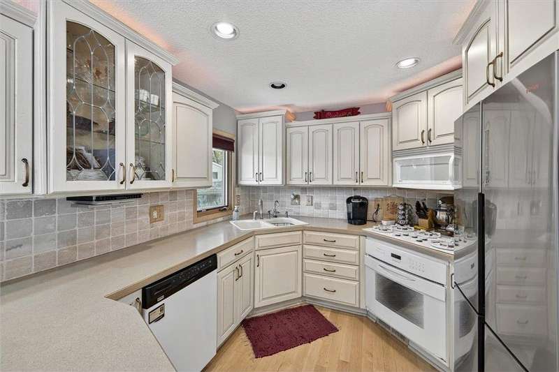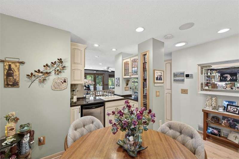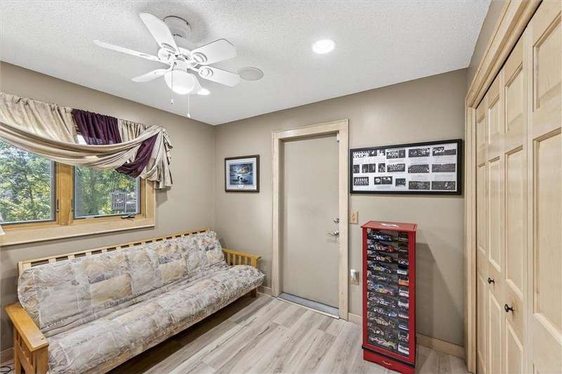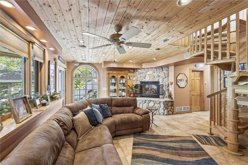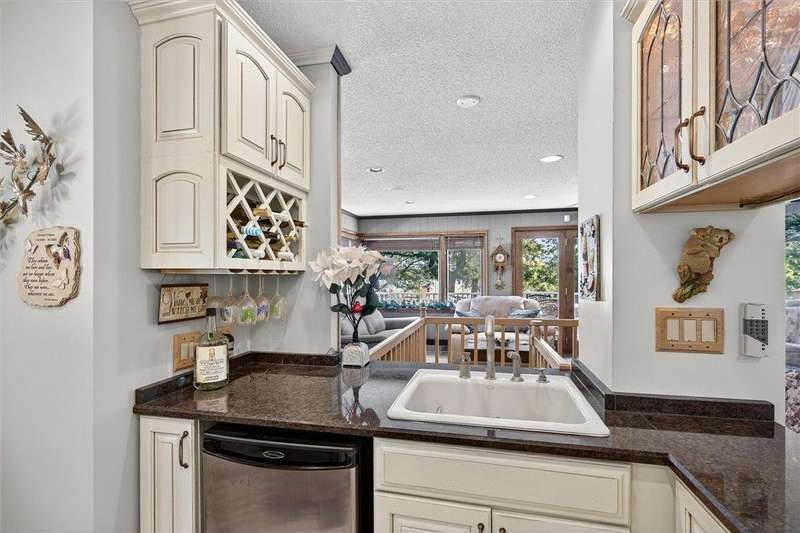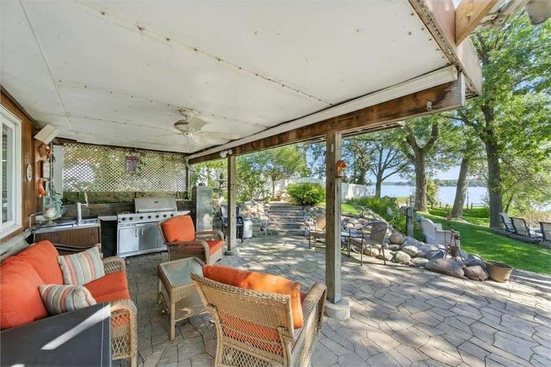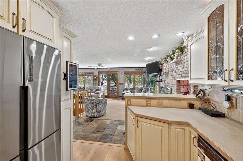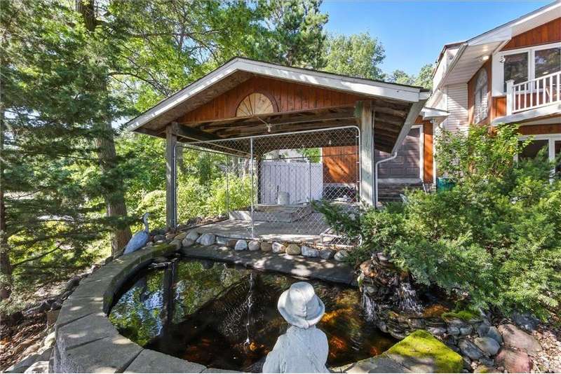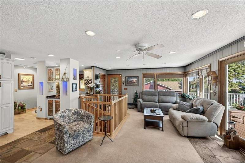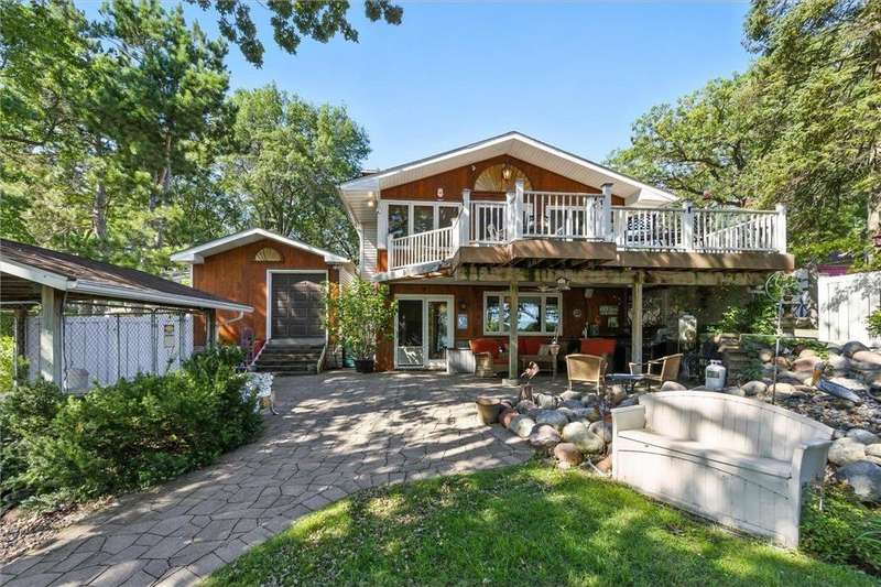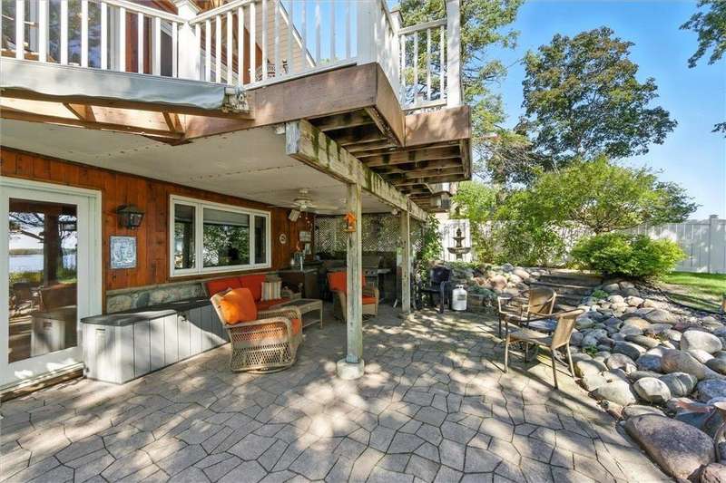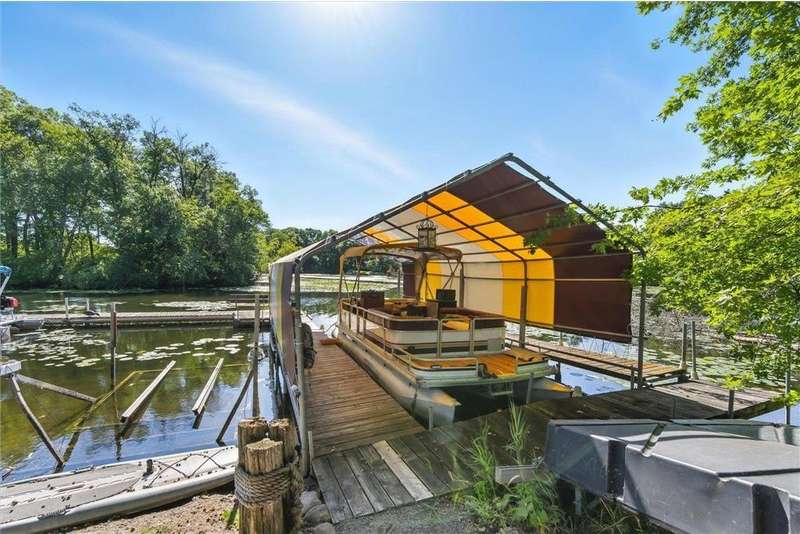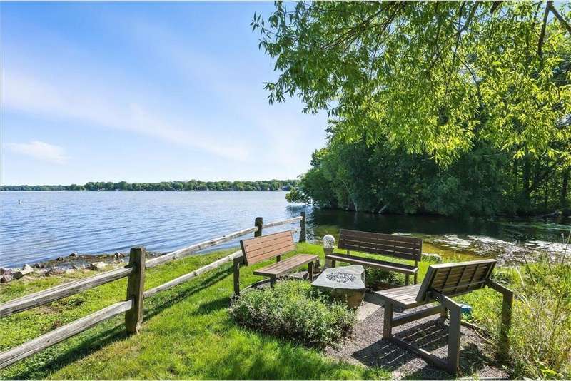 Beautiful lot on Lake Fremont with 175 feet of shoreline. Located on the main lake but siding to the safe harbor of the channel with the dock system, boat slip and boat lift that can stay in year round, for the best of both worlds. Sandy beach, tons of perennial gardens and a must see stone patio and stone steps that make visiting this yard and lake truly like a walk in the park. Boat, swim and fish in this fully recreational lake. This 1958 rambler was brought in to a new basement in 1998 and has been fully engineered to include incorporation a large stylish spiral stair to the lower level. an attached garage was built as part of this renovation in 1998. the seller has obtained a variance from the city so a new owner could build a 20 x 38 garage. The home is currently used as a 2 bedroom with the third used as an office/mudroom/guest room. One of the original bedrooms was also made into a dining room and wet bar area that enjoys beautiful views of the lake along with the living room and kitchen. The lake facing deck has a cantilevered balcony and under decking that creates a sheltered outdoor living space for gathering and grilling that starts with the outdoor patio which extends along a path to the sandy beach. Large storage shed currently used for snowmobile storage. Covered dog kennel. Must see property with so many transitional uses. Make it your own!