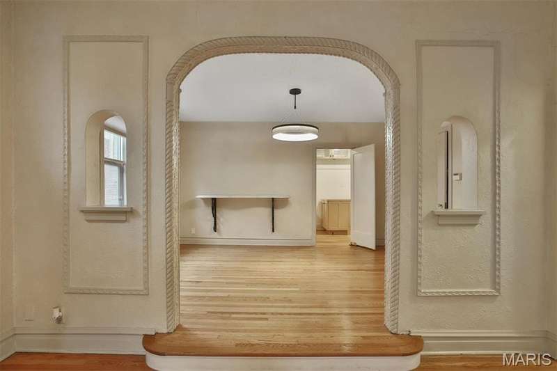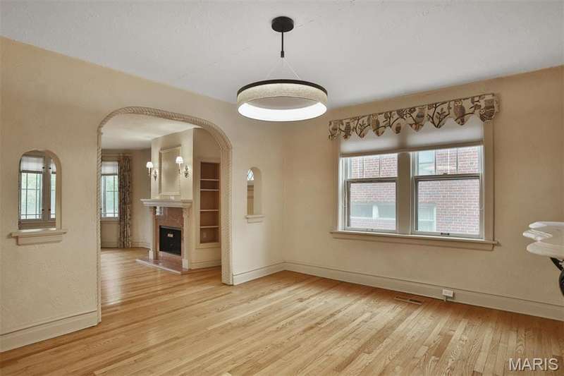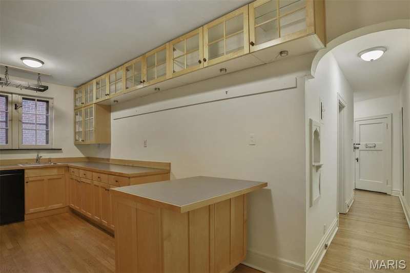 Great opportunity, with incredible new price $250K for Clayton condo! Charming condo in the heart of Clayton in the desirable Clayton school district, with beautiful open space, updated, and architecturally exquisite with custom arches and alcoves. This home seamlessly blends the historic charm with all the modern amenities. Really lovely and clean! Some of the features include: Gleaming wood floors throughout, bay window in living room, gas fireplace, updated kitchen, updated full bath, laundry in the basement (HOA owns washers and dryers for owners to share), HVAC 2017, Roof 2022, tuckpointing 2023, gutters 2023, recent plumbing updates, small safe in closet stays, small refrigerator stays (it is currently in the pantry space), space for full size refrigerator where cabinet is sitting and moveable with electric, 2 car garage in tandem, and much more! Location, location! Location: End Unit