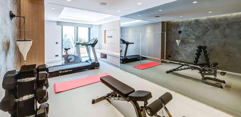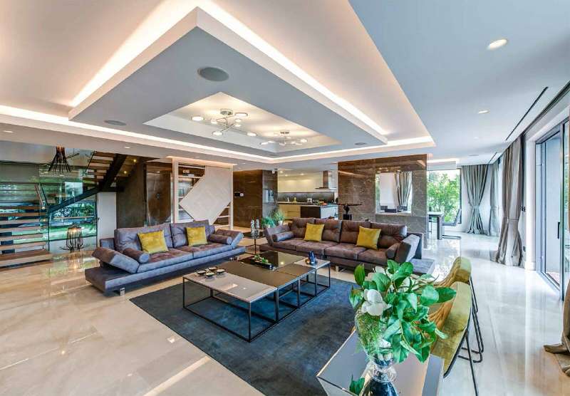 Detached villas for sale have 1 living room, an open plan kitchen, an indoor kitchen, 5 bedrooms, 7 bathrooms, 1 curtilage, 1 sauna, 1 steam room, 1 Turkish bath, 1 gym, 1 movie theater and 1 laundry room.