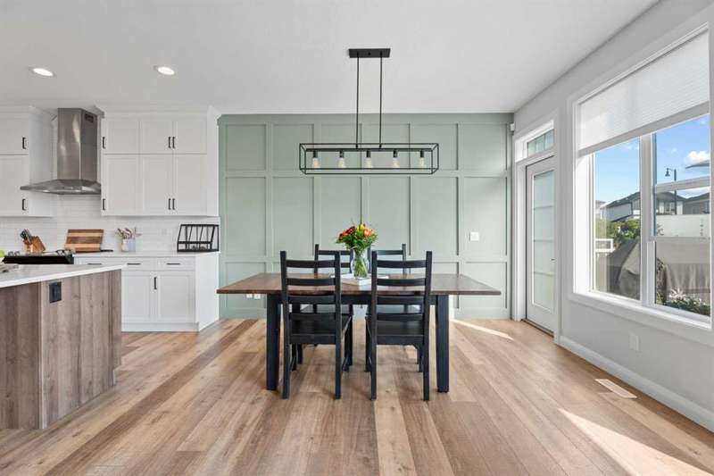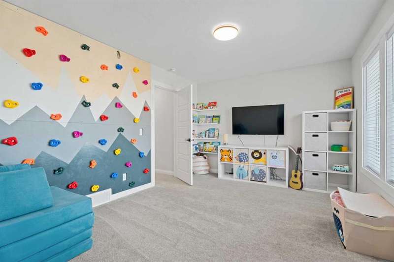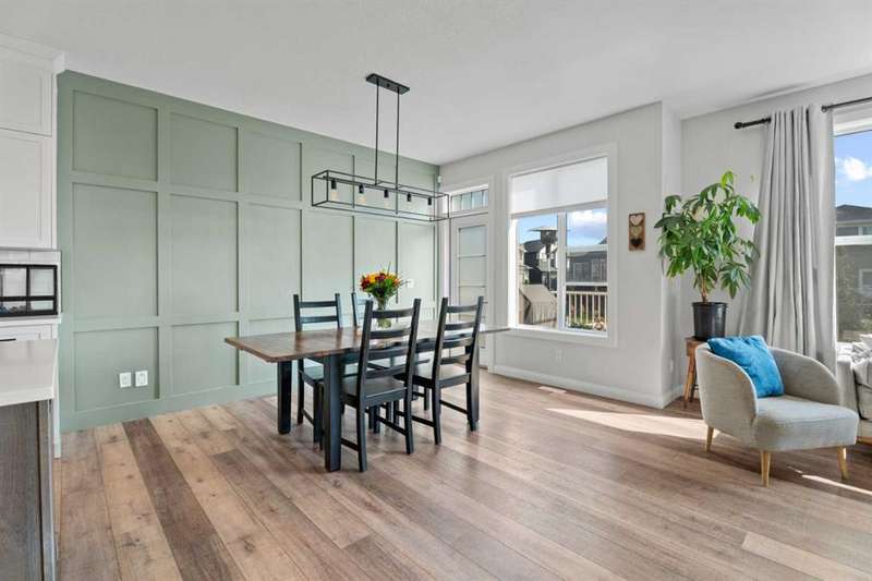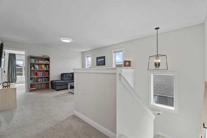 OPEN HOUSE ~ SAT, SEPT 27 ~ 2 - 4pm. This stunning, nearly new walkout home is designed for modern family living and entertaining. At the heart of the home is a gorgeous kitchen with a large island, a separate pantry, and a family-sized walkthrough from the garage for easy everyday flow. The dining room boasts a striking feature wall (you can access the main level balcony from the dining room) and the living room is warmed by a showstopper gas fireplace with an included art frame TV. An office/flex room and a stylish 2-piece powder room complete this level. The upper level offers 4 bedrooms plus a bonus room (that divides the primary suite from the other 3 bedrooms) and is filled with thoughtful upgrades throughout. The primary suite is a true retreat with a luxurious 5-piece ensuite, walk in closet with room for a king sized bedroom set. This floor also features a 5-piece family bath, convenient laundry with a sink rough-in, and two of the bedrooms have walk-in closets. The unfinished walkout basement is bright and open, with a bathroom rough-in,a great utility area complete with a laundry tub. Additional highlights include a 50-gallon hot water tank, dual-zone furnace, main level flooring upgraded to showhome standards and the garage was bumped out an additional 2 feet – so yes, your truck will fit! Outside, enjoy the thoughtfully landscaped backyard with a pergola, a fenced dog run, and a gas line on the back deck for BBQs. Located in beautiful Air Ranch, with access to the walking/biking trails, schools, conveniently accessible main roads for commuting, this home combines style, function, and space for the whole family—move-in ready and waiting for you!