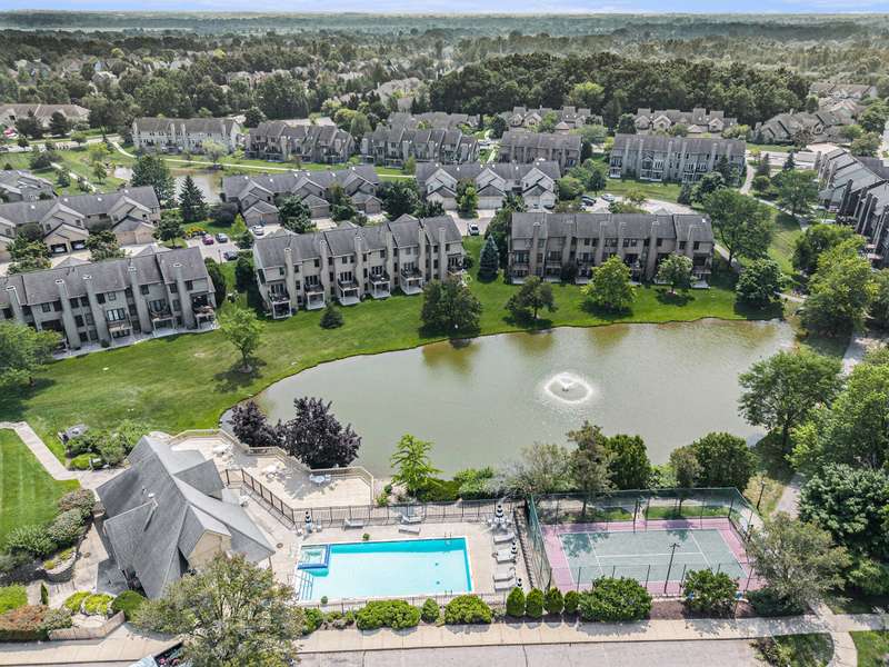 Wake up to peaceful pond views and wind down on your private balcony or patio, soaking in the calm of this well-appointed 3-bedroom, 3.5-bath townhouse with a finished walk-out basement. From the moment you step inside you'll appreciate the rich walnut vinyl plank flooring, a dramatic two-story foyer, and an open layout designed for comfortable living and entertaining. The kitchen shines with tons of counter space, stainless steel appliances, ample cabinet space, and a large bar that connects the kitchen to the dining/living room. The gorgeous fireplace in the living room is flanked on either side by windows, and views of the pond/outdoor space, creating a sense of indoor/outdoor connectivity. Upstairs, two large bedrooms feature vaulted ceilings and private en suite baths, offering space and privacy. The finished walk-out lower level adds even more flexibility, use it as a cozy family room, guest suite (3rd bedroom) dedicated home office, or all three! Located in a friendly community with walking paths, a pool, and sport court, this home offers Ann Arbor schools, low township taxes, and unbeatable walkability to grocery stores, restaurants, coffee shops, and more. Association fees cover exterior maintenance, lawn care, snow removal, water, sewer, and trash, giving you a truly low-maintenance lifestyle. Whether you're relaxing at home or heading out for the day, this home delivers convenience, comfort, and charm in all the right ways.