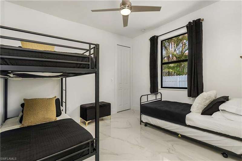 Welcome to Your Waterfront Paradise on a Beautiful Freshwater Canal! NO FLOOD INSURANCE REQUIRED. Nestled in a prime location, this stunning home exudes pride of ownership from the moment you arrive. As you approach, the double front glass doors open to reveal a bright, modern interior with soaring ceilings and high-gloss tile floors that set the tone for the rest of the home. The open-concept, split-bedroom layout is perfect for both everyday living and entertaining. Offering 4 spacious bedrooms and 2.5 bathrooms, this home is ideal for larger families and presents an incredible opportunity as an investment property. Currently operating as a successful Airbnb, it comes with upcoming bookings that can be transferred to the new owners, making it a truly turnkey property. Step outside and you'll find a large paved lanai with a sparkling inground pool, perfectly positioned to take full advantage of the southern exposure and soak up the sun all day long. The home also boasts an epoxy-finished garage floor, adding to its modern appeal. For water lovers, the freshwater canal offers endless opportunities for fun, whether you prefer kayaking, paddleboarding, or cruising on a paddleboat. No flood insurance needed. The large, fenced yard ensures complete privacy, making it the perfect place to unwind and enjoy the serene surroundings. This is more than just a home; it's where living begins-your own slice of paradise. Fully turnkey and ready for you to move in and start enjoying life on the water today! *VETERAN FRIENDLY*