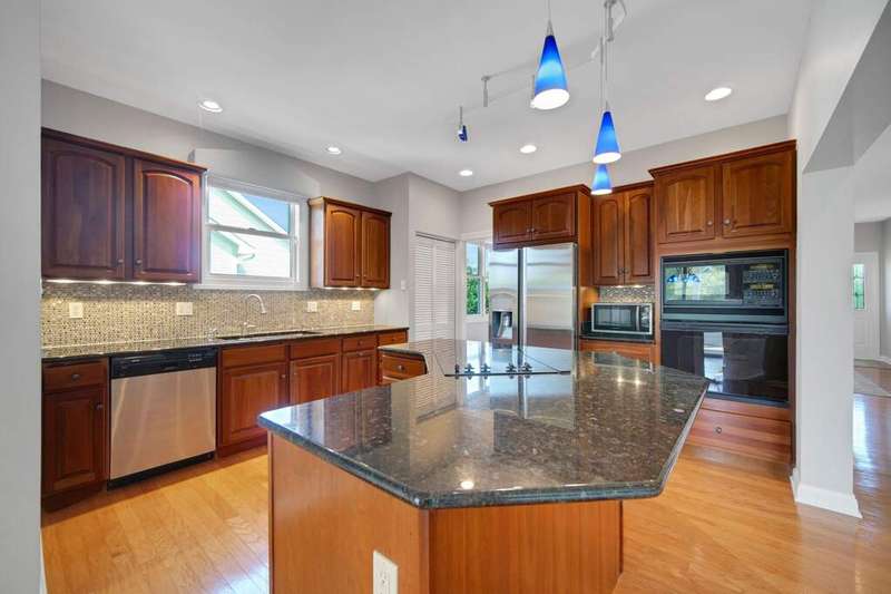 ABERDEEN BEAUTY - 5Bdrm/2.5Bth, 2-Sty Home LOADED w/ UPGRADES and Quality Finishes, along w/ Full DAYLIGHT BASEMENT and Screened Deck to ENJOY PEACEFUL NATURE BACKDROP! Stately, Brick Facade WELCOMES YOU into Home's Foyer w/ HARDWOOD Flrng and 9Ft Main Floor Ceilings, which overlooks Formal Living and Dining Rms. OPEN CONCEPT Kitchen and Family Rm are highlighted by QUALITY BUILT-INS and FIREPLACE. Kitchen has Eat-in Island, Cherrywood Cabinetry, Glass Tile Bcksplsh, & GRANITE Cntrtps. Main Level also offers Laundry Rm, Office, & Powder Rm w/ GLASS TILE BACKSPLASH. Craftsman-Style Staircase leads to FIVE Upper-Level Bdrms, including PRIMARY SUITE w/ GRANITE-TOP, Dual Sink Vanity, JETTED TUB, Separate Shower, & WALK-IN CLOSET. 4th Bdrm connects to Primary Suite w/ French Pocket Drs to make the Perfect Sitting Rm or Nursery. Situated on PREMIUM LOT backing to NATURE in ABERDEEN, which offers Community Park w/ Concerts, GOLF COURSE, Sports Courts, COMMUNITY POOL, & Playground.