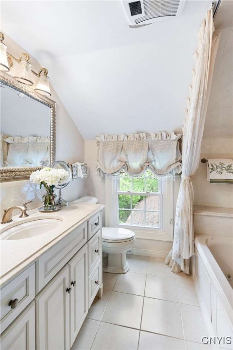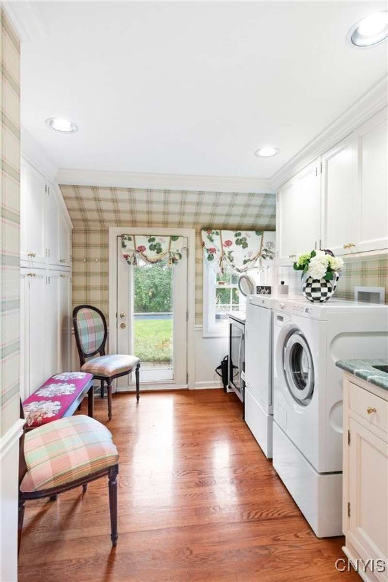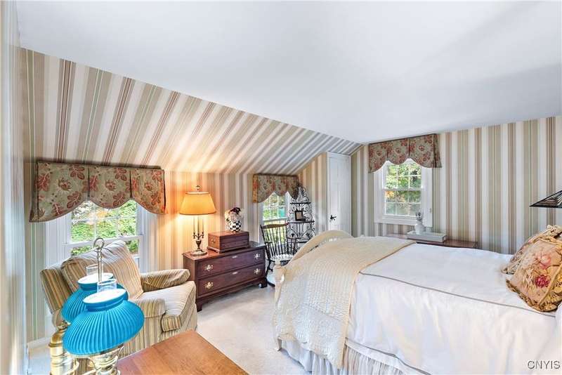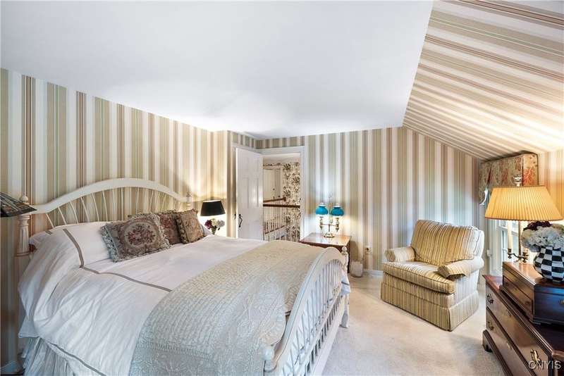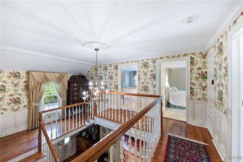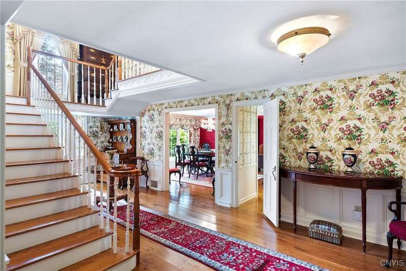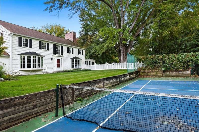 DeWitt Luxury Living on a Private .8-Acre Lot Experience timeless elegance in this beautifully maintained colonial, perfectly situated on a spacious, private .8-acre wooded lot. Inside, gleaming moldings, a grand staircase, and abundant natural light welcome you into a refined yet inviting living space. The cozy living room features a wood-burning fireplace, while the formal dining room sets the stage for memorable gatherings. The gourmet kitchen impresses with white cabinetry, granite countertops, and upscale appliances, flowing seamlessly into the family room, which boasts rich wood paneling and a warm gas fireplace. Step outside to the three-season porch overlooking lush, landscaped grounds, and a fenced in area for pets. Ideal for morning coffee or evening entertaining. Upstairs, three generous bedrooms include a luxurious primary suite with walk-in closet and spa-like bath. An updated second-floor bathroom adds modern comfort for family and guests. The partially finished basement includes a small workshop and a gas fireplace and provides additional living space or recreational flexibility. Enjoy outdoor amenities including a fenced yard and private tennis court, all just minutes from JD schools, and less than a mile to Wegmans and Route 481, offering easy access to Syracuse and the surrounding region. Move-in ready and impeccably cared for, this home offers classic colonial charm with modern updates for today's lifestyle.