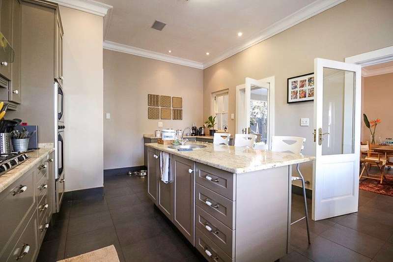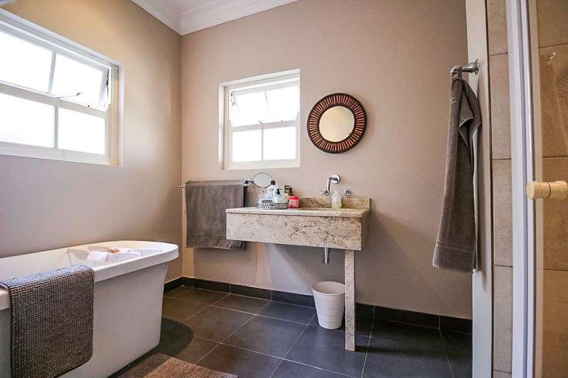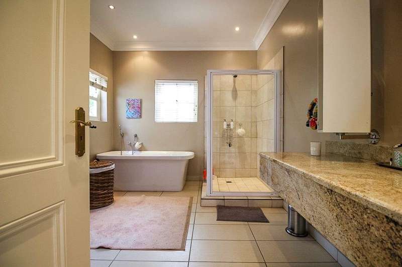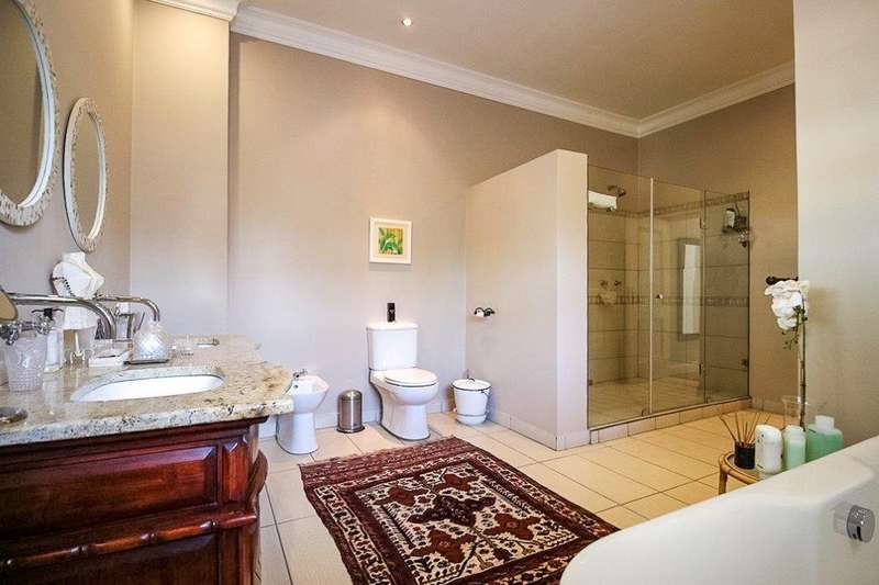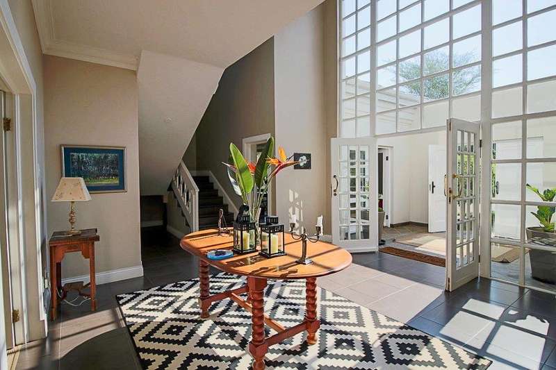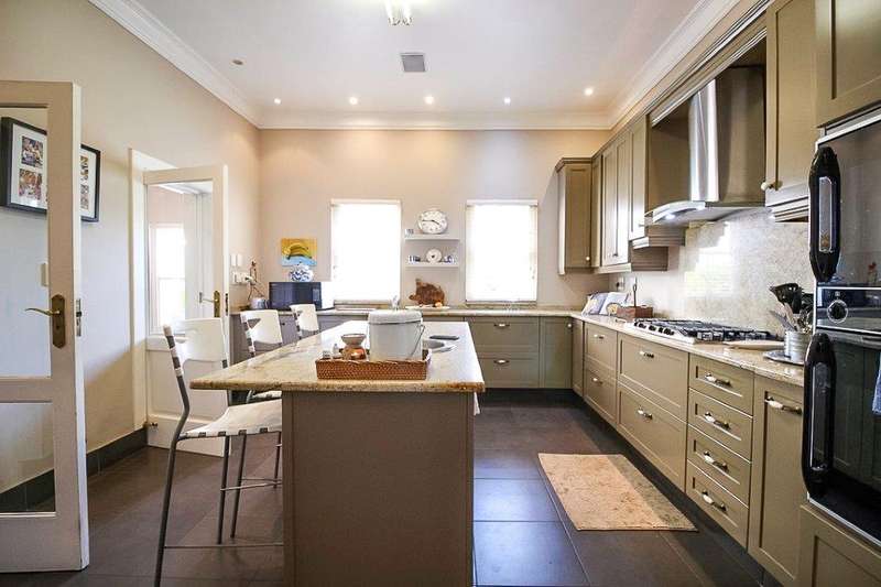 Nestled in a quiet cul-de-sac in the heart of Midfield Estate, this elegant French twist home offers style, comfort, and modern convenience. Step into a world of sophistication with multiple living areas, including a main lounge, dining area, and private lounge—perfect for both relaxation and entertaining. The beautifully designed kitchen features a center island with a breakfast nook, gas hob, and two electric ovens, making it a dream for any home chef. This home boasts four spacious, north-facing bedrooms, ensuring natural light throughout the day. With three well-appointed bathrooms, comfort is guaranteed for the whole family. Work from home? The dedicated study offers a quiet and functional space. The semi-enclosed patio with a built-in braai extends into a boma and sparkling pool, creating the ultimate outdoor entertainment area. Additional features include: - Three garages for ample parking and storage. - Staff quarters that can easily be converted into a flatlet. - Eco-friendly solar power system with batteries and solar panels, reducing your carbon footprint. This exquisite home offers the perfect blend of luxury and practicality. Don’t miss out—schedule your private viewing today!