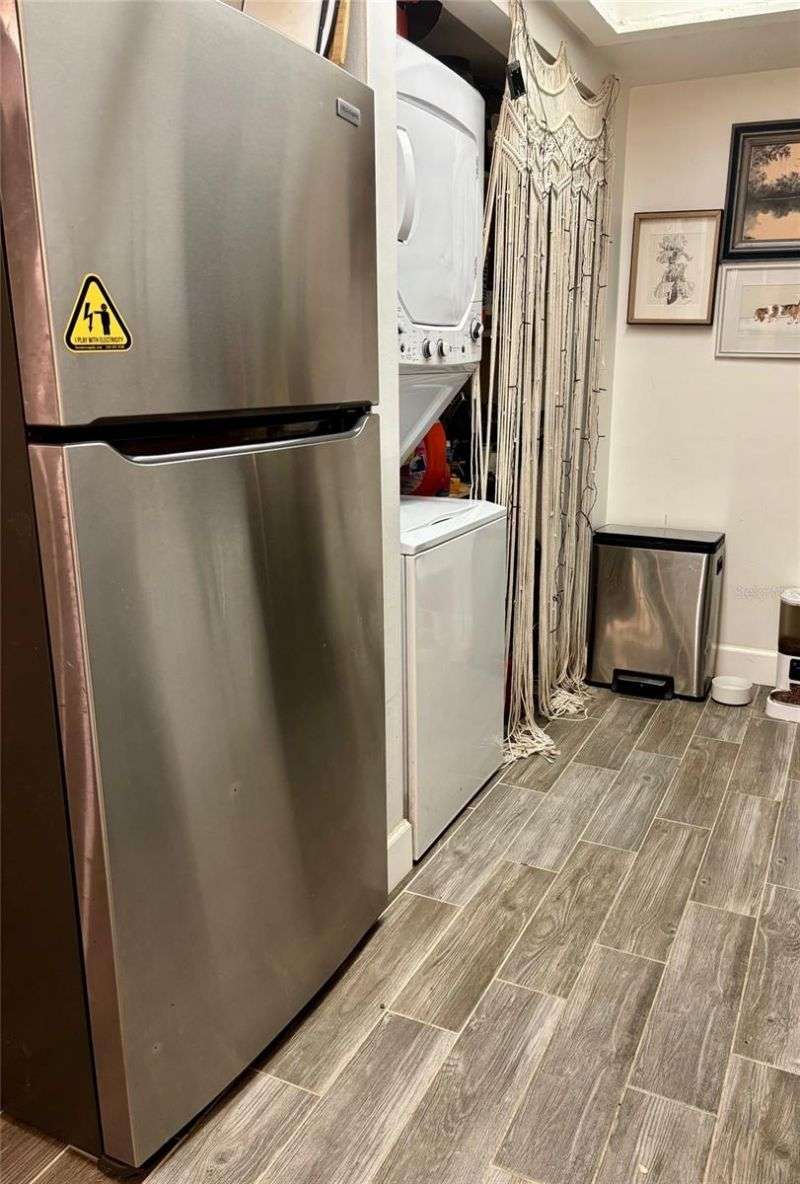 Adorable and affordable! Great for a snowbird, starter, or vacation getaway. Wood look tile throughout the entire unit. Property is located on the border of NSB and Edgewater--minutes to everything. AC is approx 2 years old, the kitchen, bath and flooring were all remodeled at that time also. Comes with all appliances including stack washer/dryer. Maintenance fee includes exterior maintenance including grass, building insurance, exterior paint and the roof is included. Great news--its flood zone X!