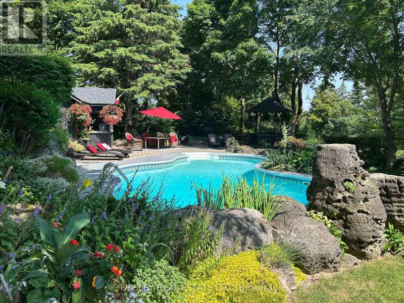 Step Into This Extraordinary Estate, C/W Professional Interior Design & Resort-Style Outdoor Living.. The Show-Stopping Kitchen, Designed By A Renowned Interior Designer, Features A Massive Island, Premium Finishes & Open-Concept Layout That's Ideal For Both Everyday Living And Upscale Entertaining. Seamlessly Flow Into The Warm & Inviting Living Areas, C/W Fireplaces (One Wood-Burning, Two Electric), Creating Cozy Spaces Throughout. Outside, Escape To Your Own Private Oasis. Surrounded By Lush Gardens & Mature Trees, The Beautifully Landscaped Yard Includes An Inground Pool, Serene Ponds, A Dramatic Waterfall, Two Hot Tubs & Multiple Lounging Areas. The Outdoor Bar & Gazebo Make This Space An Entertainers Dream Perfect For Unforgettable Summer Gatherings. All Just Minutes From Top-Rated Schools, Hospitals, Parks, Trails, Shopping, Dining, Golf Courses & Major Highways.
