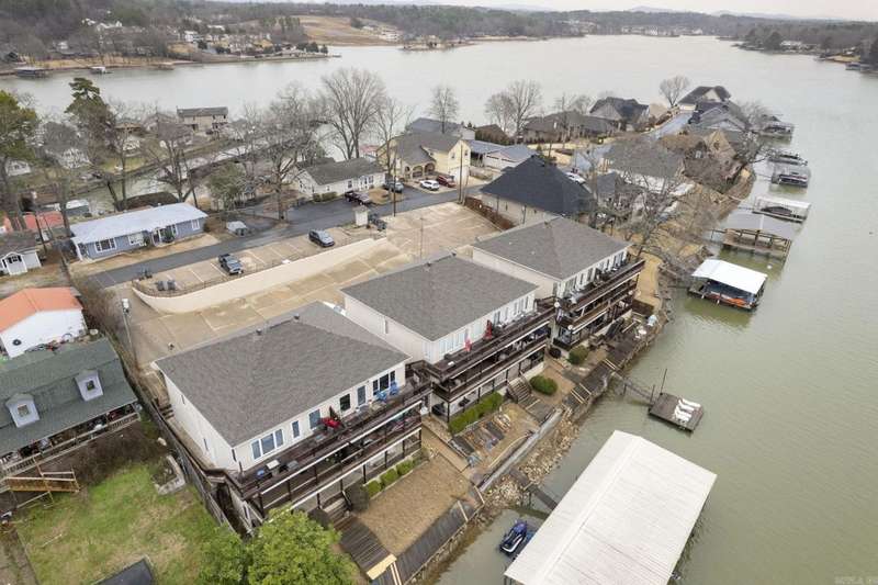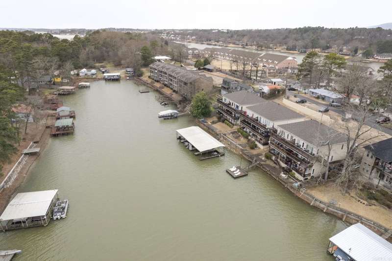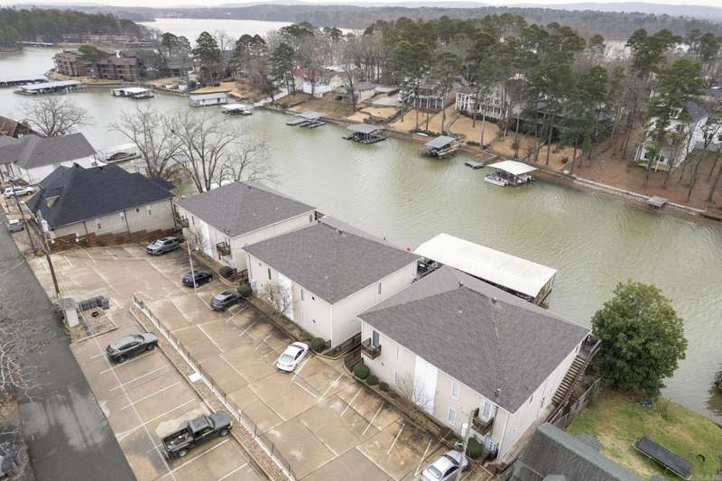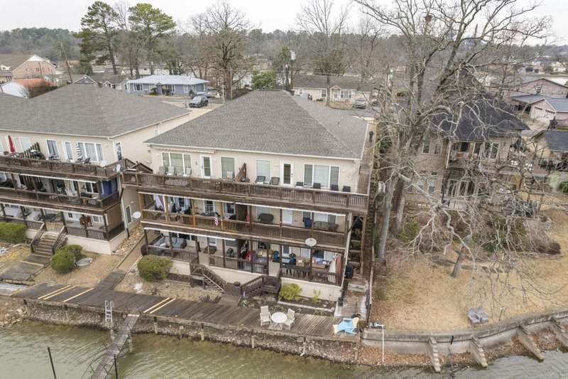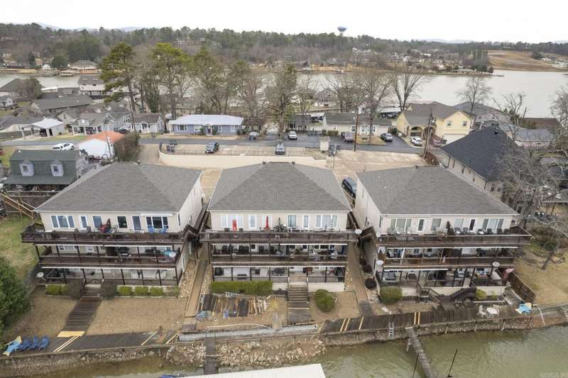 Endless potential at this adorable lake front condo that has water year-round. This unit features a large deck overlooking the water and a spacious living area offers ample room for all your guests. Generous sized guest rooms and a substantial size primary suite with a small private deck. Conveniently located a half mile to Hot Springs Marina. Minutes to Oaklawn, fine dining and more. No boat slip, but a nice boardwalk for short term tie up. Furnishings are negotiable. Three-month rentals or more. No nightly rentals. Motivated Seller. Bring us an offer.
