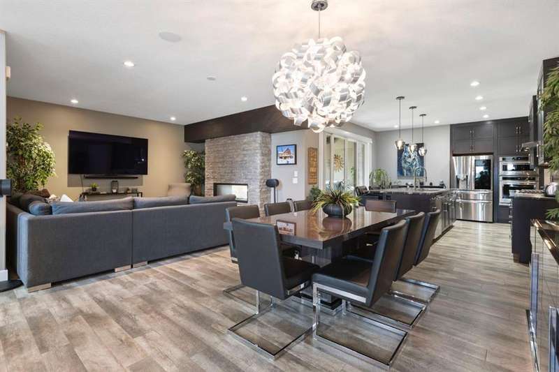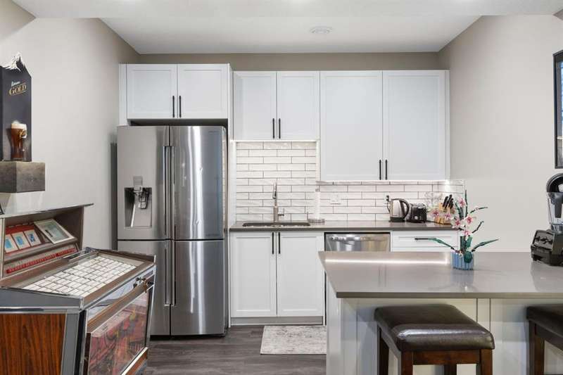 Welcome to this fully loaded luxury home designed with every detail in mind. Offering over 4,000 SF of finished living space, 6 bedrooms, and over $300K in recent upgrades inside and out, this home is truly perfect for a large or growing family. From the oversized heated 3-car garage with epoxy floors to the stunning indoor/outdoor living spaces, this property offers the ideal balance of function, comfort, and lifestyle. The heart of the home is the chef-inspired kitchen featuring leathered granite counters, under-cabinet lighting, high-end stainless steel appliances including a 5-burner gas stove, convection oven, LG fridge with sphere ice maker, microwave, plus a second fridge and wine fridge in the large pantry. A dedicated coffee station makes mornings effortless. The main floor also includes a private office, an expansive living room with a dramatic two-way fireplace, plus laundry with a convenient laundry chute. Upstairs, retreat to the luxurious owners’ suite with its private balcony, coffee station, custom dressing room, and spa-inspired ensuite with heated floors, marble vanities, oversized glass shower, skylight, and jetted tub. Three additional bedrooms with blackout shades, a full bathroom with double sinks, and a versatile bonus/games room complete the upper level. Remote blinds on front and upper bedroom windows have been add both comfort and privacy. The basement is designed for entertaining and extended family living, a nanny suite or tenant, with a full wet bar (fridge, microwave, dishwasher), second laundry, and a separate entrance. Outdoors, enjoy an automatic 4-season screened-in porch with a louvered roof, gemstone lights, irrigation, raised garden beds, water feature, cushioned turf, and a large storage shed. The low-maintenance yard and side yard access make this space practical as well as beautiful. Additional features include built-in ceiling speakers, water softener, instant hot & cold tap in the kitchen, air conditioning, decorator finishes, and an extra-long driveway with paved alley access. Located minutes from top-rated schools, Bingham Crossing, coffee shops, daycare, and upcoming amenities including a new Costco, Nordic Spa, and the East Harmony Trail extension, this property also offers easy access to downtown Calgary, the Springbank Airport, Calaway Park, and the Rockies. This is more than a home—it’s a complete lifestyle in Harmony with Lake Access. Book your private showing today and experience all the upgrades and comforts for yourself.