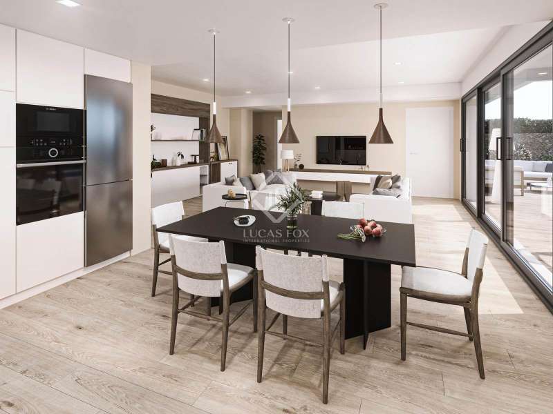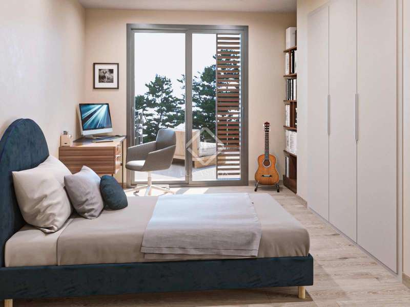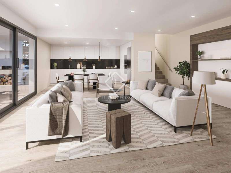 Lucas Fox presents this new build development in a private and exclusive residential area, surrounded by pine forests with views of the Mediterranean Sea. The complex offers a large communal area with a swimming pool, a gourmet room, an outdoor gym, a solarium and green areas. This newly built villa has a surface area of 194 m² on a 382 m² plot , close to the only golf course on the island in Son Parc, Es Mercadal. The property has a beautiful garden area with a swimming pool and a private garage. It is distributed in three plants. The ground floor has a double bedroom with a built-in wardrobe , a bathroom and a spacious living-dining room with an open integrated kitchen; all with large windows, so a lot of natural light enters. From this space you can also go out to a beautiful porch, as well as the garden and the pool. The first floor has three double bedrooms with built-in wardrobes and access to two terraces, including the master suite with its private bathroom. The floor is completed with an additional bathroom . The lower ground floor offers a garage for one car, a bathroom and a utility room. It has high quality finishes. The kitchen is furnished with contemporary furniture from the Porcelanosa brand, a compact countertop and equipped with Bosch appliances : induction hob, hood, oven and microwave. The property will have a hot-cold air conditioning system and a home automation system. An ideal property for families, either as a first or second residence, in a privileged development . The development has a building license, with a start date in January 2023. Completion is expected in September 2024. Contact us for more information or to arrange a visit.