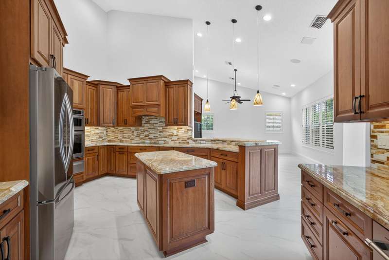 Welcome to this beautifully upgraded and impeccably maintained home in the heart of Wellington, with low HOA fees, and top-tier features throughout. Just a few miles from WEF and Global Dressage, this meticulously maintained home boasts a durable metal roof (installed in 2016), a brand-new 2024 AC unit, vent system, and air handler for the master suite & office, plus a second AC unit with a 2024 air handler and 2019 outside unit. Enjoy peace of mind with full hurricane protection including impact windows on the front & accordion shutters on the back, 2 hurricane break-out panels on the screen-enclosed pool patio, and a whole-house automatic Generac generator powered by a 500-gallon underground propane tank,