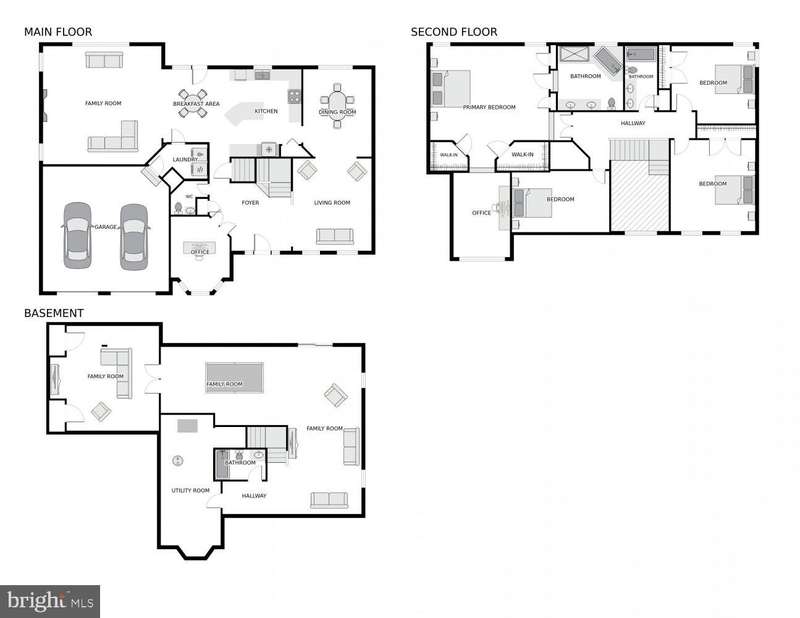 Welcome to Mt. Airy Estates! This beautifully maintained three-level colonial offers a perfect blend of comfort, space, and timeless charm. Featuring 4 bedrooms, 3 full bathrooms, 1 half bath, a private office, and a 2-car garage, this home was designed with both everyday living and entertaining in mind. Step inside to a grand foyer with soaring ceilings that sets the tone for the open floor plan. The main level boasts an eat-in kitchen with plenty of room to gather, plus a separate breakfast area just off the kitchen leading to the family room. The family room's cozy fireplace makes it the perfect spot for relaxing on chilly evenings. Upstairs, retreat to the spacious owner's suite, complete with a private sitting room and a luxurious en suite featuring a soaking tub, double vanities, and a walk-in shower. Three additional bedrooms and a full bath with double vanities offer comfort and flexibility for family and guests. The finished basement is an entertainer's dream, featuring a media room for movie nights or game days, with a walk-out to the backyard patio overlooking peaceful wooded views, your very own private retreat. Nestled in the desirable Mt. Airy Estates community, this home combines elegance and function, with all the space you need to live, work, and entertain in style. Don't miss the opportunity to make this wonderful home your own! Schedule your showing today.