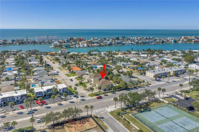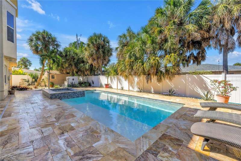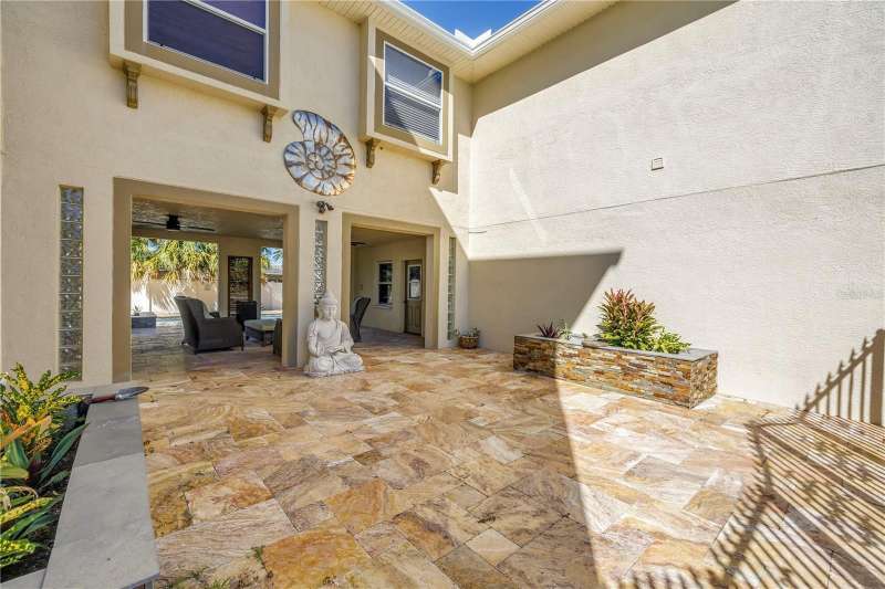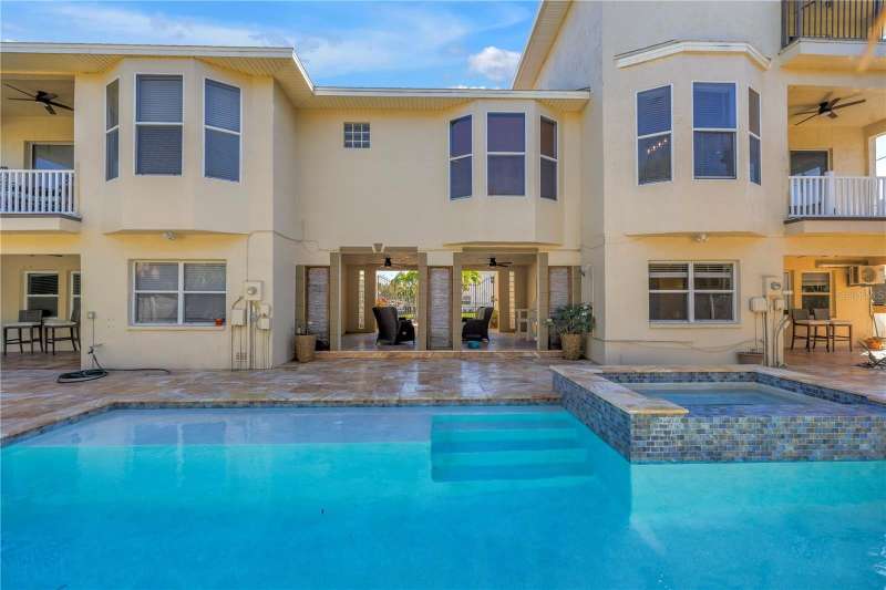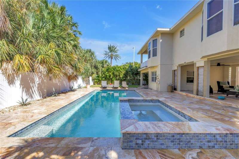 This is your perfect coastal living retreat that checks all the boxes! This outstanding, masterfully designed, custom-built 3-bedroom, 4-bath tri-level pool home with bonus room truly has it all. Located just one mile from the gorgeous, powdery white sands of Sunset Beach, you’ll love living close to the water in the “Sunset Capital.” Enjoy everything the area has to offer, parasailing, paddleboarding, windsurfing, Blind Pass Marina, Corey Avenue shops, rooftop bars, waterfront dining, and the beautiful beaches of Pass-A-Grille and St. Pete Beach, all just minutes away. Unwind in your own private retreat with a heated, sparkling pool and spa surrounded by lush tropical landscaping. The travertine-tiled courtyard is perfect for grilling or entertaining friends. You’ll also have plenty of parking with an oversized two-car garage and a wraparound driveway. Step inside through the magnificent, light-filled front door to find a spacious and inviting home with soaring 11-foot ceilings, an open floor plan, and a large covered balcony. The custom kitchen impresses with granite countertops, custom cabinetry, a large island with seating, built-in oven and microwave, cooktop, and modern lighting. Beautiful coastal luxury vinyl flooring flows throughout the second-floor living area and bedroom, creating a warm and stylish space. Outdoor balconies on both the second and third floors offer even more opportunities to entertain or simply enjoy the gentle coastal breeze. The third-floor primary suite features bamboo flooring, sliding glass doors to a private balcony, and a luxurious ensuite bath with dual vanities, a walk-in shower, a jacuzzi tub, and a huge walk-in closet. The third bedroom also offers privacy with its own ensuite bath featuring a whirlpool tub/shower combination, a private porch with distant Intracoastal views, and an extra-large dual closet. A versatile bonus room on the first floor, overlooking the pool, can serve as an additional bedroom, game room, office, or workout room, and includes a full bath with walk-in shower. This home truly blends comfort, space, and the best of coastal living, all in one perfect location!