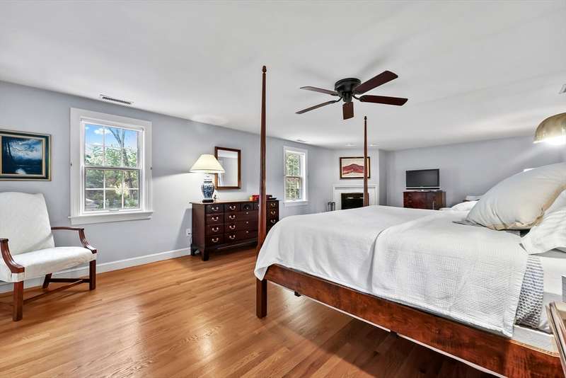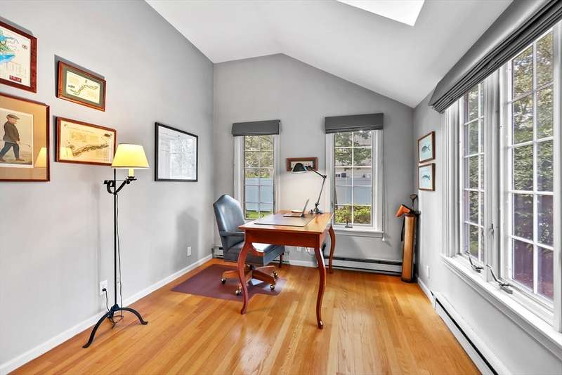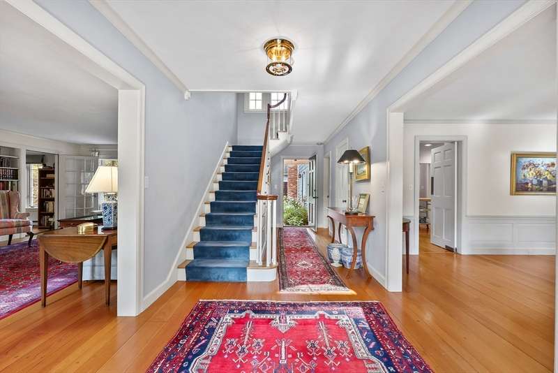 Classic colonial w/superb curb appeal in the coveted Kibbe Tract has exceptional flow, pristine condition & outstanding functionality. Home welcomes w/its gracious foyer featuring wide openings to living & dining rooms plus sightlines to connected living spaces & backyard. Living room offers fireplace, custom built-ins & seamless access to both home office & cozy den- perfect places for working remotely. Renovated kitchen impresses w/timeless design of inset custom cabinetry & high-end appliances, flowing into stunning family room adorned w/warm cherry wood & corner fireplace. Mudroom w/custom cubbies, large closet & access to attached garage adds convenience. Upstairs, a generous primary suite features full bath & walk-in closet, accompanied by two additional bedrooms, one being ensuite. Lower-level recreation room is ideal for play, while the private backyard w/hedges, lush lawn & patio offers a serene retreat. Newer boiler, h/w heater, roof & exterior paint provide peace of mind.