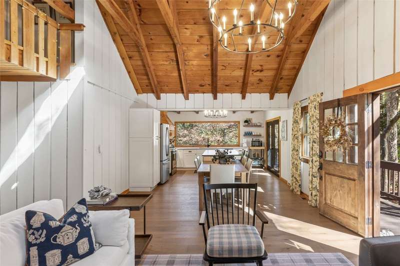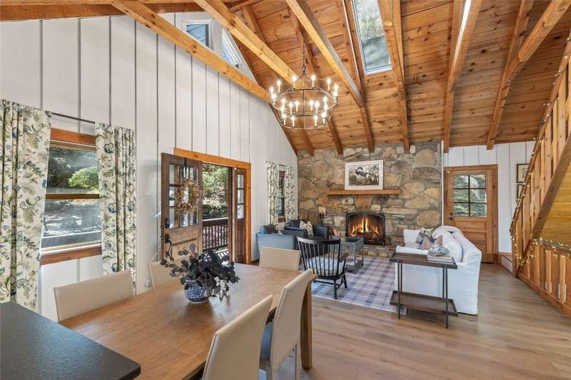 Experience the perfect balance of mountain charm and refined comfort at 140 Kettle Creek Road. Thoughtfully crafted and beautifully maintained, this three-bedroom, three-and-a-half-bathroom home rests on just over an acre of wooded privacy moments from the heart of Cashiers. Warm wood accents, soaring cathedral ceilings, and a stone masonry fireplace set the tone for relaxed sophistication, while the kitchen's natural stone countertops, island, and stainless-steel appliances make everyday living both functional and inviting. The floor plan is designed for versatility, featuring private bedroom suites on both the main and lower levels and a loft that provides additional space. The lower-level family room opens to a covered patio surrounded by natural beauty, while the stone patio and firepit at the entry create a welcoming space for gatherings on cool mountain evenings. Under current ownership, professional remediation addressed a prior instance of water intrusion in the lower level, ensuring lasting stability and peace of mind. Conveniently located near Trillium, Mountaintop, Glen Cove, and Lake Glenville, this home offers an exceptional opportunity for those seeking a full-time residence, seasonal retreat, or investment for visiting guests and club members. 140 Kettle Creek Road combines comfort, confidence, and authentic Plateau living in one inviting package.