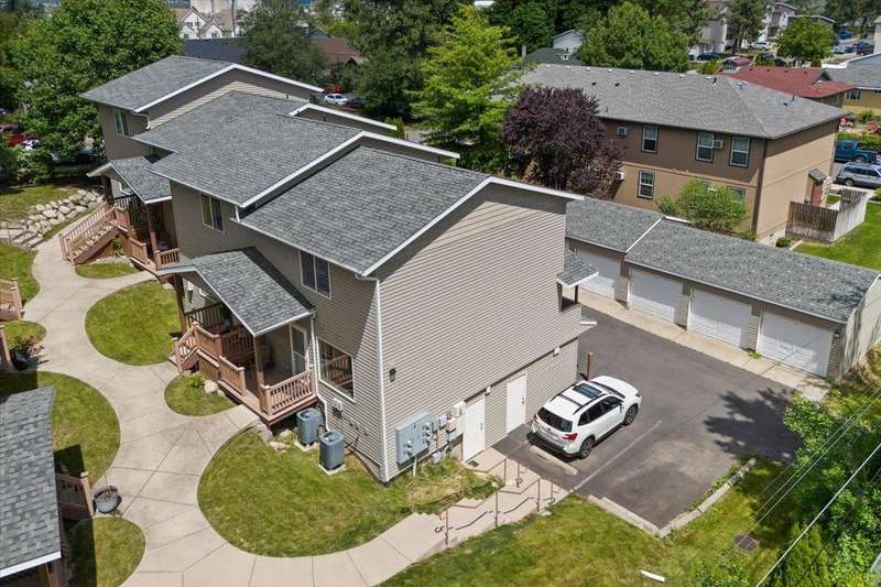 Impeccably maintained condo in the Perry District, close to schools, parks, shopping and downtown. On the main floor is the living room, a half bath that has been updated, the kitchen and informal dining room with slider to a covered deck. The kitchen has an eating bar and all of the appliances are included. Upstairs has two bedrooms, one with double closets and a full bath with tile tub surround. In the lowest level is the entry from the garage and the laundry room/mud room. heat is supplied by an electric furnace with a heat pump and A/C. There is a fire sprinkler system in the entire unit for your safety. HOA dues are $405.00 per month and include water, sewer, garbage, ground maintenance, snow removal and exterior building maintenance.