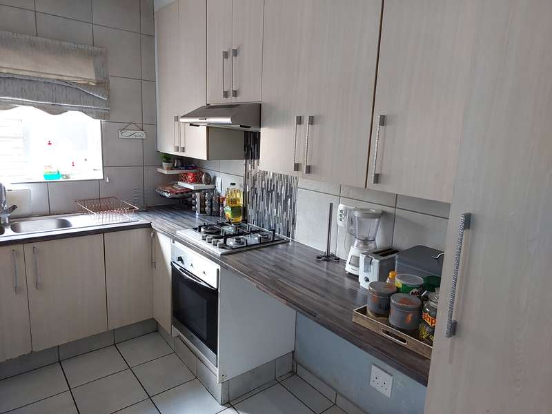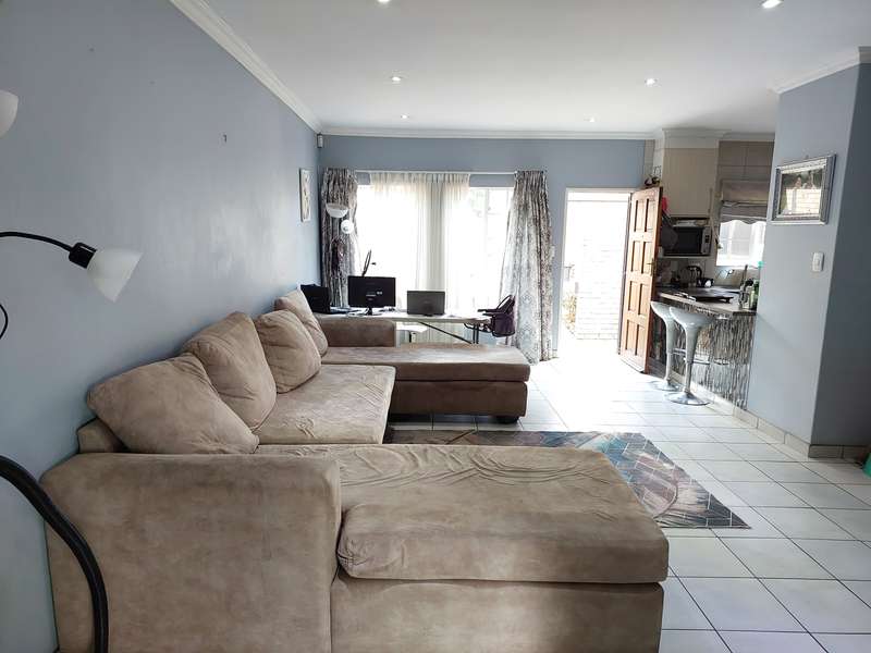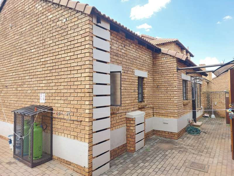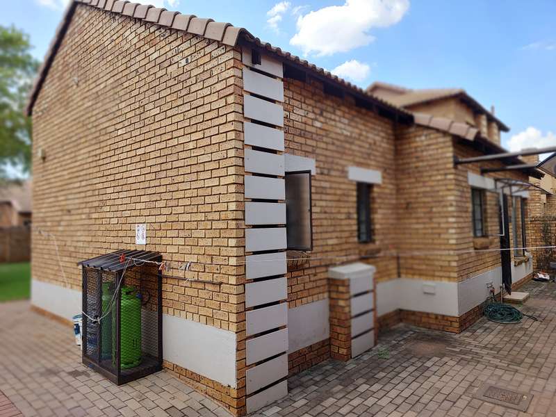 Low maintenance, Lock-up and Go Unit close to everything This lovely 2 bedroom townhouse offering a spacious lounge, modern kitchen with a gas stove, breakfast nook and space for 2 appliances, both bedrooms have laminated wooden floors, built-in cupboards as well as air-conditioning system for your convenience, main bedroom has an en-suite bathroom. There is another bathroom that is servicing the 2nd bedroom that has modern finishes. The open-plan living area has a sliding door that leads to a covered patio and a big yard where your friends and loved ones can chill or play. There are also 2 lockup garages as well as plenty of visitor’s parking, did I mention that this property is a corner property, which means privacy, privacy and more privacy !! The townhouse is within a gated complex, within 24hr-guarded security estate. This Estate is close to the following amenities - public and private schools, filling stations, shopping centers and malls, medical centers, as well as easy access to R55, N1 and N14 highways.. Do not miss out, secure a private viewing with Mandla Today.