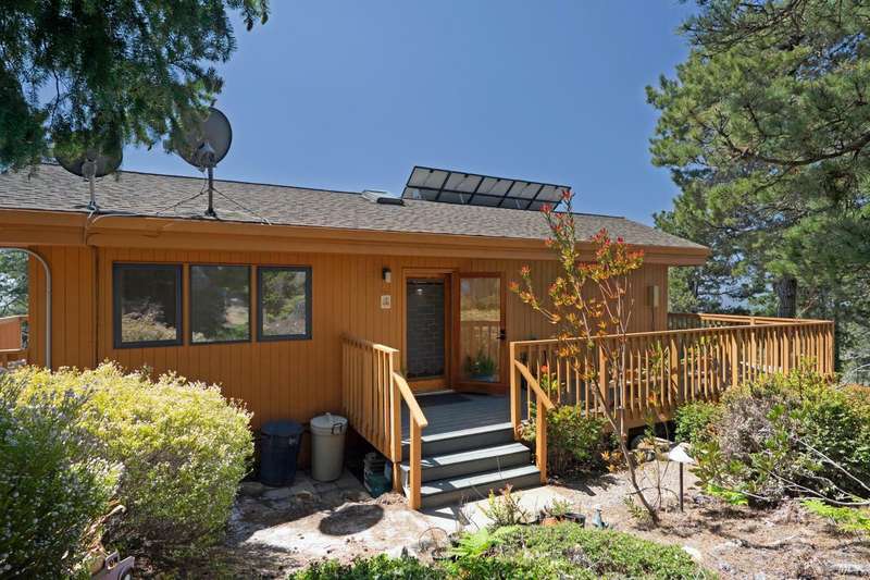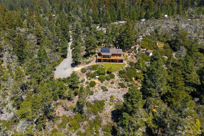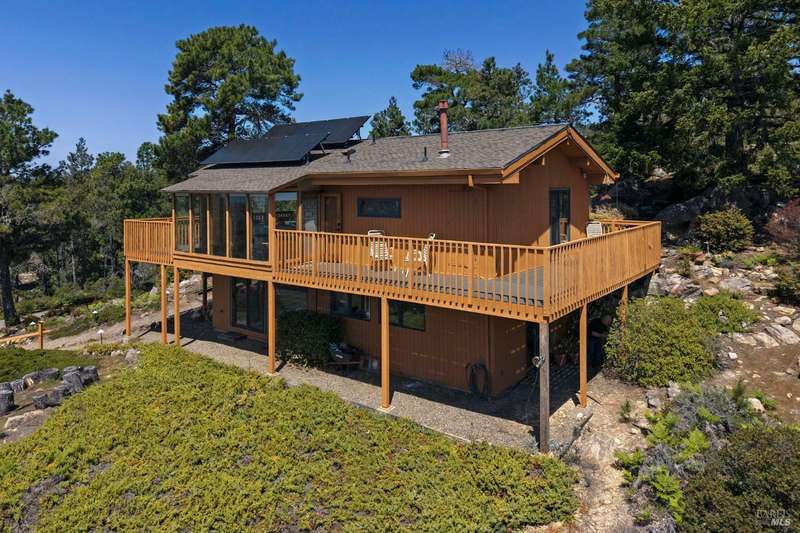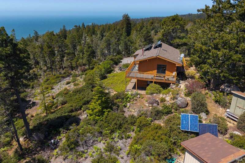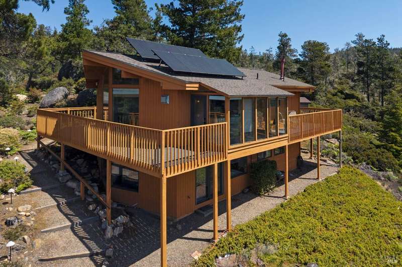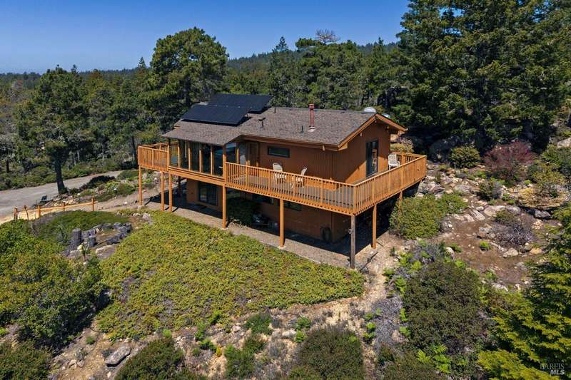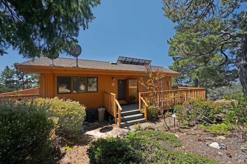 Beautiful home with five private acres to roam. Never before on market! This home was built, owned & loved by one family for many years. Gorgeous ocean views from this off-grid home. 2 BD/2 BA with office/extra room. Enjoy the amazing sunsets from the wrap around deck or from the solarium room off kitchen. Property has hiking trails throughout, garden space and large boulders. Detached 600 sq ft garage with 300 sq ft room above for workspace, extra living, yoga or art studio space. Just north of Anchor Bay and south of Point Arena. Great beaches, surfing, fishing, star gazing and wildlife. This is a special property not to be missed. If you are looking to get away from it all with the best of Mendocino coastal banana belt living - this is it!