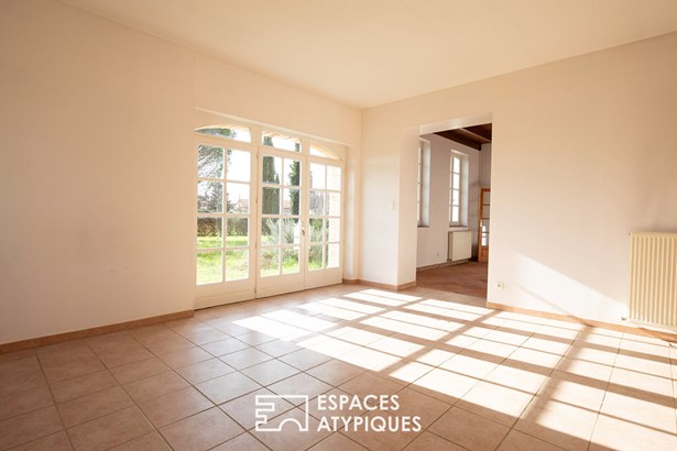 Inside, the house has a warm and welcoming layout. The double living room is bathed in light thanks to its large windows, offering uninterrupted views over the terrace and lush garden. The three good-sized bedrooms promise calm and serenity. A spacious bathroom completes the living space. The period architecture is reflected in charming details such as the exposed beams, terracotta tiles and brick window frames, which add a touch of authenticity to the property. The easily convertible attic is a major asset for anyone wishing to extend the living space or create additional rooms as they wish.