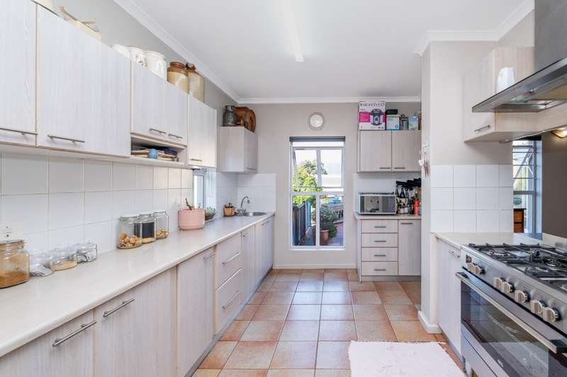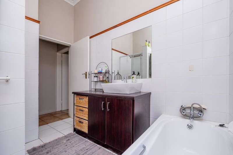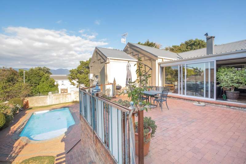 This 778 m2 property, is positioned against a picturesque backdrop of Paarl Mountain Reserve and a stone's throw away from many walkways, hiking & bicycle trails. Within walking distance from Western Cape's top schools, such as Paarl Girls High and Paarl Boys High, restaurants, and trendy and upcoming coffee shops, this four-bedroom house offers everything you need to make this your new address without hesitation. This property has endless potential and leaves enough room for change to set your thumbprint in style. A welcoming entrance hall leads to a spacious and restful open-plan kitchen and living area, complete with a sizable fireplace set between two built-in, wooden wine racks - promising for cozy winter gatherings. The kitchen has a lovely gas stove and convenient, separate, laundry/scullery and pantry. The house is finished with aluminum glass windows through which beautiful mountain views can be seen through almost all of them. Together with the high ceilings in this house, a combination of tile and laminate flooring contributes to cool airflow through this space. There are 4 bedrooms, of which the main bedroom has an en-suite bathroom and is fitted with air conditioning, while the remaining three and all other rooms in the house have ceiling fans. All bedrooms are superbly finished in laminate flooring, and three enjoy built-in cupboards, with storage space reaching the lofty ceilings. Altogether the home offers two bathrooms, a 2nd living/dining room - with a built-in wooden bookshelf, extra linen cupboards as well as an additional storage room inside the dwelling, and a spacious braai/ entertainment area with a built-in braai, sliding glass doors, and durable roll up blinds. The braai area opens up onto an airy patio, overlooking the garden, swimming pool, Paarl Mountain, and DuToitsKloof Mountain range. A double garage with ample storage space, staff quarters, and two additional storage spaces are added to this comfortable home. Another unique benefit to this property is nine fitted solar panels - with an 8kw Inverter and two Hubble battery packs, fibre, and two geysers. The neighbourhood also boasts a tip-top neighbourhood watch, securing the surroundings and promising a peaceful night's sleep. The property has a secure back garden as well and is pet friendly.