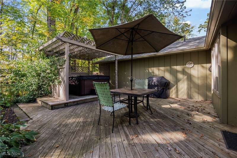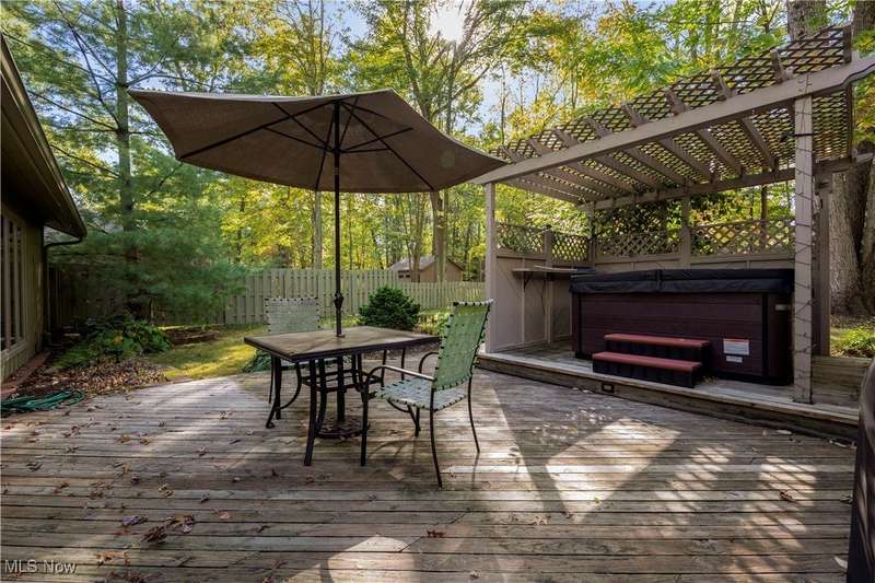 Prepare to Fall in Love with this Sprawling 3-Bedroom, 2.5 Bath Ranch, with true One Floor Living. Tucked perfectly away on a quiet dead-end street, this home was built by Bob Schmitt Homes, who are known for their signature floor-to-ceiling closets and beautiful woodwork, offering abundant storage and timeless detail throughout. Upon entering this fabulous home, you'll find a Spacious Living Room and a Formal Dining Room with Elegant White Wainscoting. A bright Eat-in Kitchen features Newer Appliances, Tile Backsplash, 2 Pantries, a Built-in Bench, and Gorgeous Cabinetry. The cozy Family Room has a Gas Brick Fireplace with Wood Accents and offers the perfect view into the Picturesque Backyard. The Primary Suite is a true Retreat, also with backyard views. It offers a Walk-in Closet with shelving, an additional Linen Closet, and a Private Bath with a Double Vanity. Along with the 3 spacious Bedrooms, there's a flexible 4th Room ideal as a Guest room, Office, Playroom, or Den. A Laundry Room with built in cabinetry is located off the Oversized 2 Car Garage. An additional Full Bathroom, and a Powder Room complete the beautiful interior. Step outside to your own Private Oasis- a Fenced in Yard and a Patio with a Pergola houses a warm and inviting Hot Tub - which would feel wonderful in those cool evenings to come. This all overlooks the Serene and Secluded Backyard, just perfect for Relaxing or Entertaining. This home has been Lovingly Maintained with Significant Updates: Roof (2022), New Luxury Vinyl Flooring in many rooms (2025), Fireplace (2020), Some Windows (2018), Furnaces/AC Units (2021)... and More! Truly move-in ready, this home combines space, style, and peace of mind-all in a desirable, quiet neighborhood.