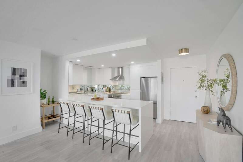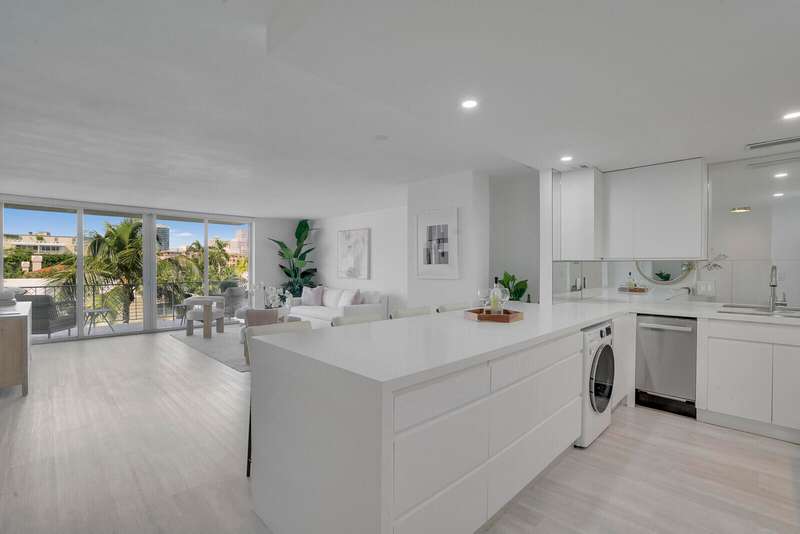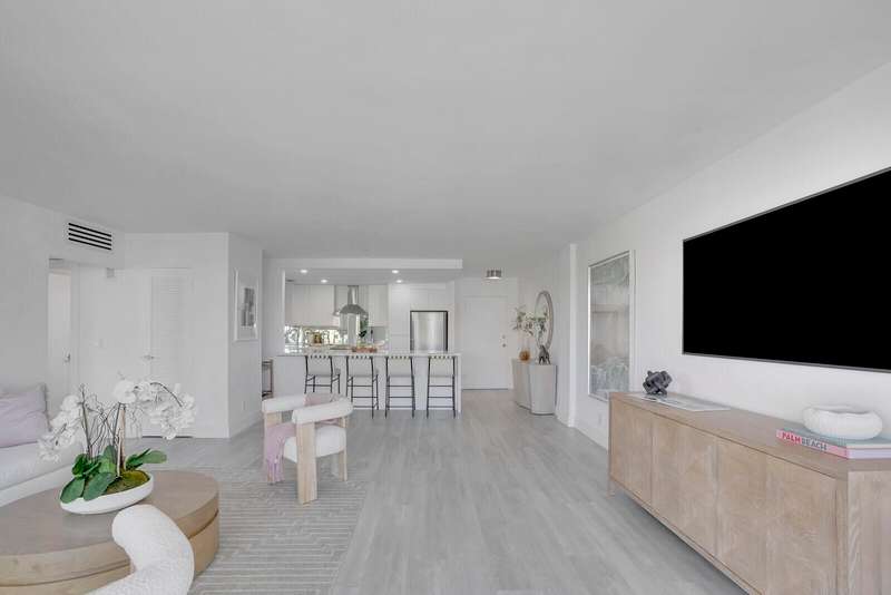 Buy with confidence knowing Island House has completed their required building work, and assessments arepaid! Welcome to the new Island House, where chic sophistication meets ultimate convenience in this newlyrenovated 2-bedroom, 2-bath condo. Nestled in a boutique, pet friendly white glove building with a dedicateddoorman, this stunning residence offers effortless living in the heart of Palm Beach. Totally renovated to the studs, this apartment is now a designers dream with a light open floor plan, European white kitchen with top-tier appliances, washer/dryer, to the pale gray flooring throughout. Impact windows with motorized shades allow in natural light with views from balcony. Lovely pool and cabana area, perfect for relaxing, covered parking, and very rare : SEE MORE