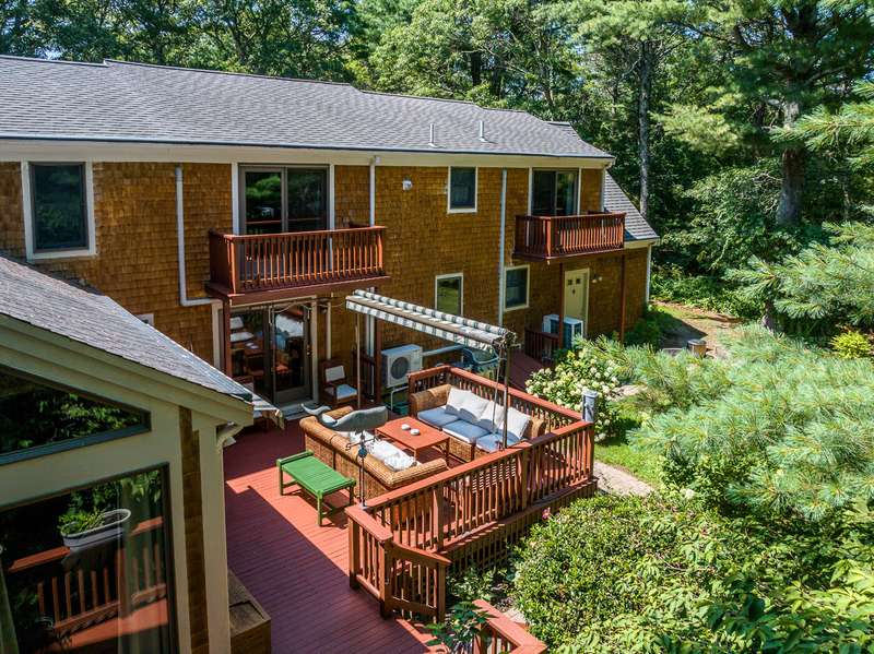 Centerville Sanctuary! The private driveway opens to this gracious estate home, on beautifully landscaped grounds. The home features a Cathedral Living Room flowing seamlessly into the Dining Room and the Chef's Kitchen (2022) with high-end appliances and Granite Countertops. The 1st floor Primary Suite (2001) is a private retreat with Gas Fireplace, separate Kitchenette & full-size Laundry, 2 Full Bathrooms, enormous Closet/Dressing Room. Adjacent to the Chef's Kitchen is a Home Office and a Full Bathroom. The wrap-around Deck features remote-controlled awnings and ramp for easy access. The 2nd floor offers an Xtra-large Bedroom with Laundry area, a 3rd Bedroom & another Full Bathroom. Lower level offers a Family Room/Media Room with A/C & Heat, as well as 2 Large Storage Areas. 9 mini-split heat pumps for A/C & Heat (4 new in 2019). Roof in 1999. Andersen Windows & 4 Sliders - 2001. 75 Gallon hot water heater - 2010. Gutter shield. 2019: Garage Door & Opener, 8-zone Irrigation.