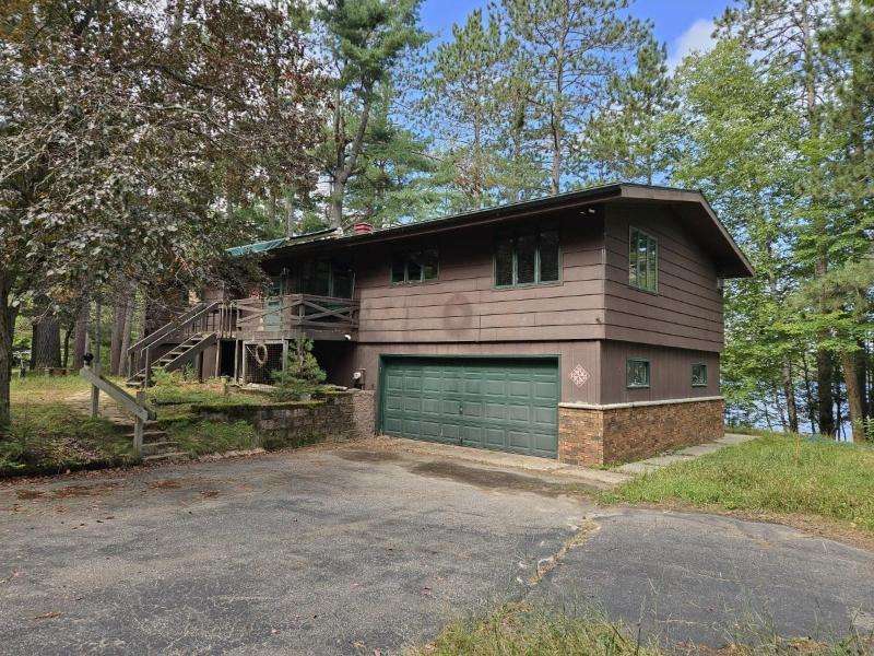 Nestled on 156 feet of northwest-facing Sunset Lake frontage, this tranquil 3 bedroom, 2.5 bath raised ranch offers peaceful lakeside living with abundant wildlife. The main level features a spacious living room with gas stove, dining room, kitchen & flexible dining area or family room. A 1/2 bath off the front entrance adjoins the primary bedroom. The other 2 bedrooms & a full, updated bath complete this level. The walkout lower-level has a rec room with woodburning fireplace that adds warmth & space to unwind, as well as laundry, 3/4 bath, utilities, storage & access to the 2-car drive-under garage. Enjoy outdoor serenity from the front deck or rear patio. The property includes a 1-car detached garage with a studio/workshop above that offers multiple windows & skylights--perfect for hobbies or creative pursuits. A blacktop driveway adds convenience. While the home could use some TLC & updating, its serene setting & versatile layout make it a rare opportunity to create your dream retreat.