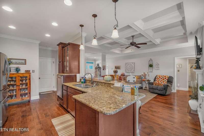 SELLER IS MOVING AND IS VERY MOTIVATED! This immaculate home in the highly sought-after Carrington Subdivision in Lenoir City, TN is just a few minutes from I-75 and Turkey Creek, with lots of restaurants and shopping. This well-maintained home features 4 bedrooms and 3 full baths, all on the main level, with a bonus room over the garage. There are coffered ceilings in the living room with hardwood floors that continue into the kitchen, dining area and breakfast nook. The bathrooms and laundry have ceramic tiles and the bedrooms are carpeted. The kitchen has lots of storage, along with granite countertops and a raised dishwasher for easy loading and unloading. This home features an open floor plan. The master suite has two walk-in closets, a whirlpool tub, double sinks and a walk-in shower. There is also a bonus room upstairs for extra storage, an office, craft room, workout room, or whatever you desire. There is a private covered back porch and professional landscaping with great curb appeal. All information, including square footage, taken from tax records and sellers and deemed to be reliable but not guaranteed and should be verified to the buyer's satisfaction.