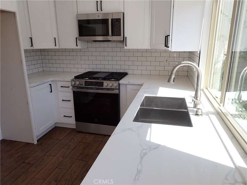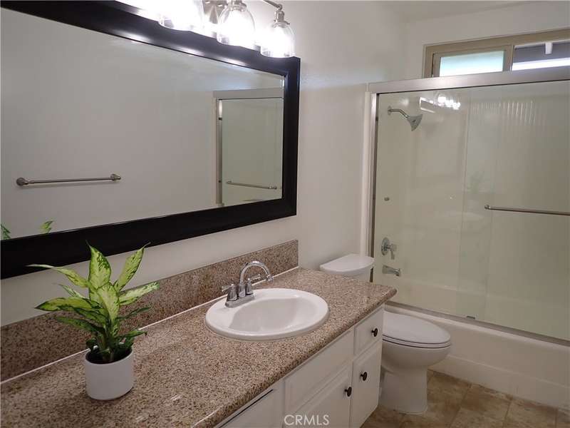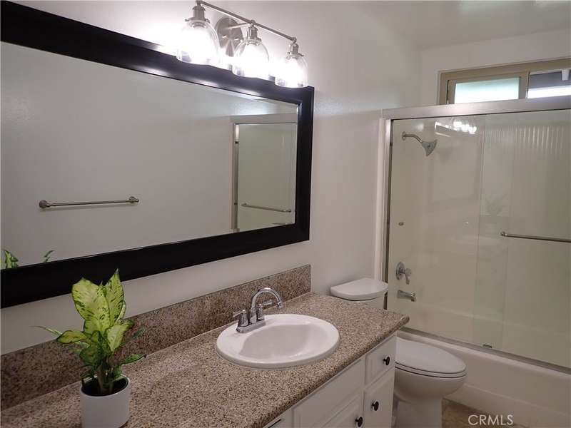 WOW! Sought after Brookdale Community town-home. Brand New Kitchen with custom cabinets, quartz counter tops and subway tile back splash. Just so many upgrades. New paint throughout with ceilings scraped. Half bath downstairs features new custom vanity, new toilet, new quartz top and new faucet. Downstairs has porcelain tile throughout. Upstairs has two large bedrooms with new carpet. Bathroom has a new shower door, new toilet and new faucet. This home also has newer windows thru-out. Newer furnace and central Air Conditioning, newer water heater. Large private back patio between home and two car garage. Interior tract location. Community pool, clubhouse and play area. Located close to shopping and freeway access.