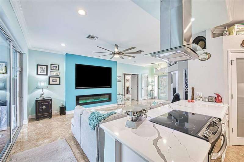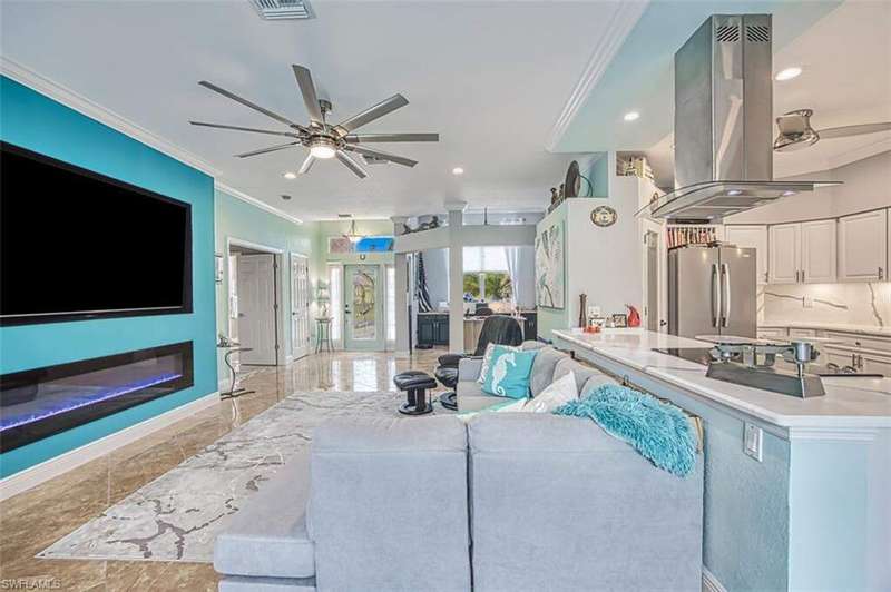 SELLERS ARE READY TO MOVE. BRING ALL OFFERS. Welcome to your dream home in the small community of Southwind Preserve! This stunning single family home boasts 3 bedrooms, , + office 2 bathrooms, and a spacious 3 CAR GARAGE. The in-ground salt pool with SUN SHELF is perfect for relaxing on hot summer days, while the office provides a quiet space to work from home. The modern kitchen features stainless steel appliances, quartz countertops, and a built-in coffee/wine station, making it a chef's paradise. The tile flooring adds a touch of elegance and is easy to maintain. Recently added an electric fireplace with a built in TV area above to add to the warmth of the home. With a new roof and close proximity to Sanibel, Captiva, and Fort Myers beaches, as well as the international airport and historic downtown area, this home offers the perfect blend of luxury and convenience. Don't miss out on the opportunity to make this your forever home in paradise! Accordian Storm Shutters for added peace of mind.