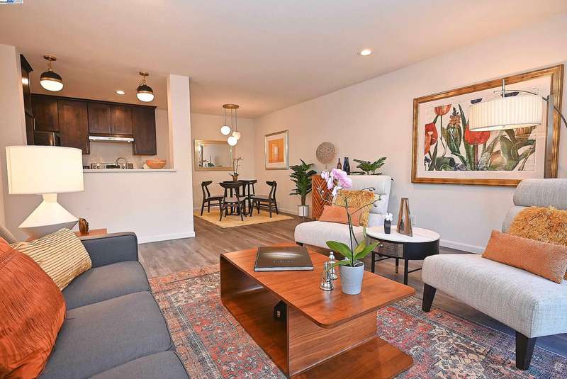 PRICE REDUCED!! Located at the end of Webster Street, with easy access to its vibrant dining and shopping options, Park Webster is a gated community of condominium homes. This ground floor unit boasts an updated kitchen, lots of new flooring, a spacious bedroom with two generous closets, and a living room/dining area space. A generous patio has a roomy storage closet, and the deeded parking space is located close to the unit. Beautiful grounds surround the community pool. Commute options such as AC Transit and the ferry are close by, as are Washington Park, Crown Beach, and breweries, restaurants and shopping at the Point. The farmers market is just a few blocks away. This is your opportunity for convenient modern home ownership in the heart of Alameda's West End.
