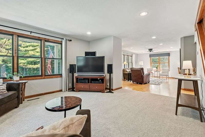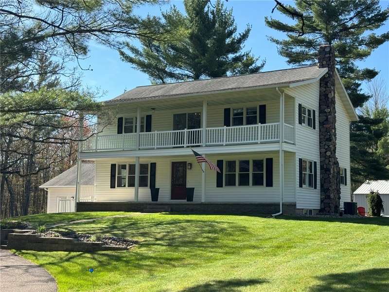 Welcome to your private retreat on 14.65 wooded acres with scenic trails and abundant wildlife. This spacious 4-bedroom, 4-bathroom home blends comfort and nature offering ample room for family living and entertaining. This beautifully renovated home offers open concept kitchen and living room, main level & lower-level laundry rooms, central vac, maple hardwood flooring, custom trim and many updates. Walk-out lower-level rec room with wet bar. Conveniently large mud room. Enjoy your morning coffee or evening breeze on your welcoming front porch, second floor balcony, or in the spacious screen porch. 24x16 Barn with insulated electric & upper-level storage. For those with hobbies, equipment, or business needs, this property offers a separate driveway with a 63x40 Pole Building including office space, bath rough-in, heated shop, 20x10 ft overhead door & 100 amp service. With plenty of space both inside & out, this property is ideal for those seeking privacy nestled among the trees.