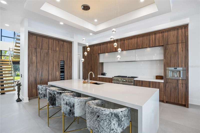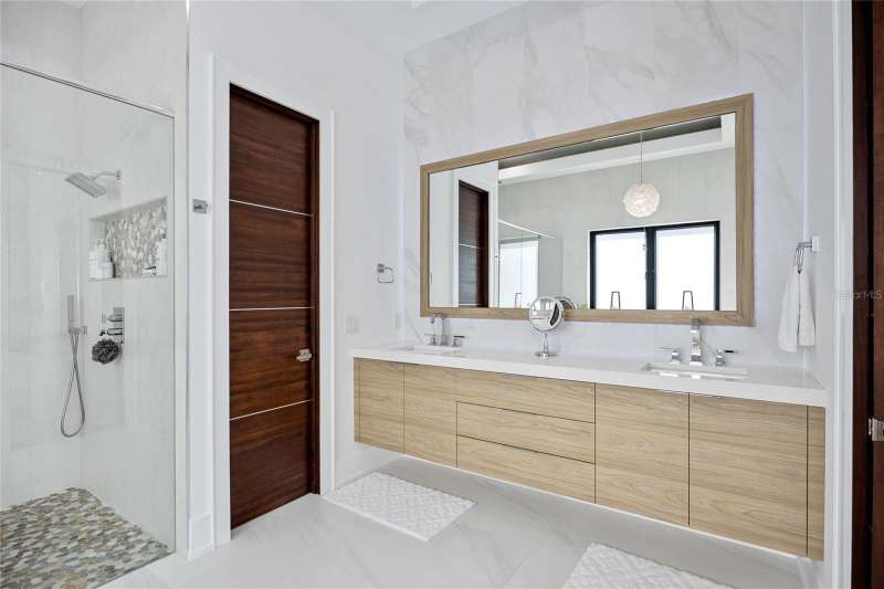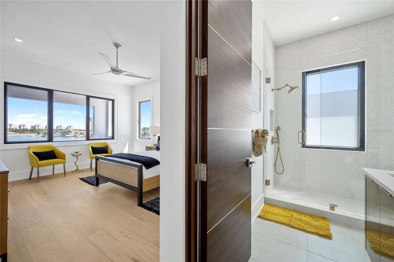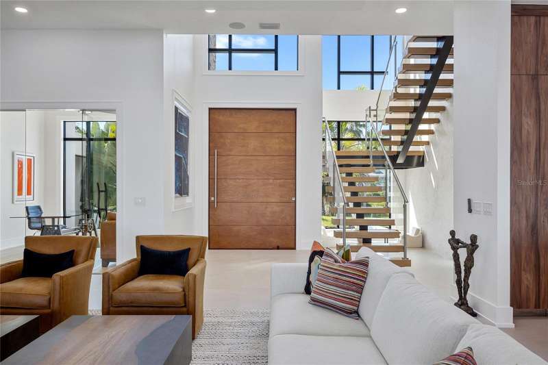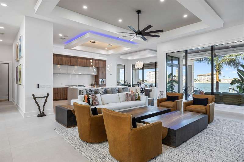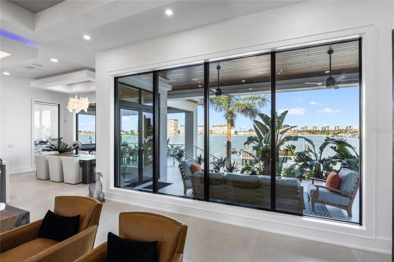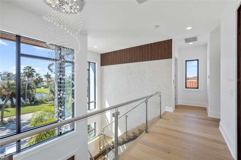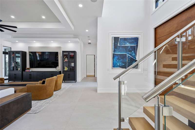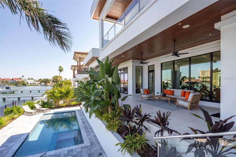 Introducing a Contemporary Waterfront Masterpiece in Tampa Bay. Striking modern architecture and clean, minimalist design come together in this extraordinary custom-built waterfront residence. Completed in 2023, this home makes a bold statement with its commanding curb appeal, soaring 28-foot entry, and dramatic 23-foot foyer. Brilliant natural light, soaring ceilings, and meticulous craftsmanship set the stage for a refined coastal lifestyle. The open-concept floor plan highlights a chef’s dream kitchen with custom cabinetry, pearl-white quartz island, Thermador appliances, gas cooking, full-height wine chiller, and built-in espresso machine, complemented by a discreet butler’s pantry. Expansive living and dining areas open seamlessly to the water, while the executive-style office and designer guest bath add both elegance and function. The owner’s suite is a private sanctuary with breathtaking views, balcony access, dual walk-in closets, and a spa-inspired bath featuring custom vanities, a Jacuzzi soaking tub, and a glass-enclosed multi-head rain shower. Upstairs, two additional en suite bedrooms and a large media room extend to a 330-square-foot covered terrace with commanding views of the bay. Outdoor living is elevated with over 1,200 square feet of covered waterfront terraces, a resort-style pool and spa, outdoor kitchen, and lush landscaping. Waterfront amenities include an updated seawall, large composite dock, kayak/paddleboard launch, boat lift, and mooring capacity for a sizable yacht. Located just ten minutes from downtown St. Petersburg and six minutes from the Gulf beaches, this residence offers an extraordinary blend of serenity and convenience. Nestled within the highly coveted, gated enclave of Bayway Isles, the community is distinguished by its 24/7 guarded security, pristine surroundings, and enduring sense of privacy. This estate is not simply a residence but a testament to vision, artistry, and uncompromising craftsmanship. More than a home—it’s a statement of modern luxury and life without compromise. Arrange your private showing today and experience the pinnacle of waterfront living.