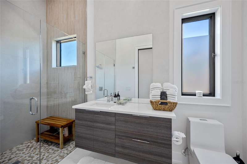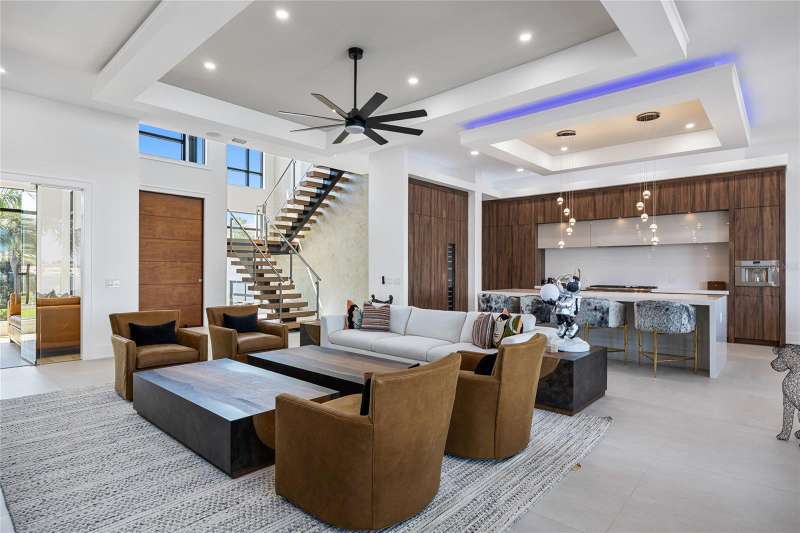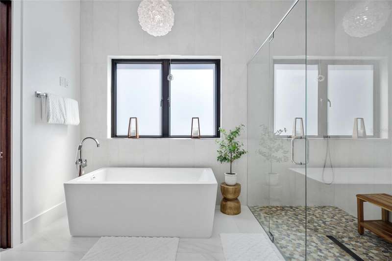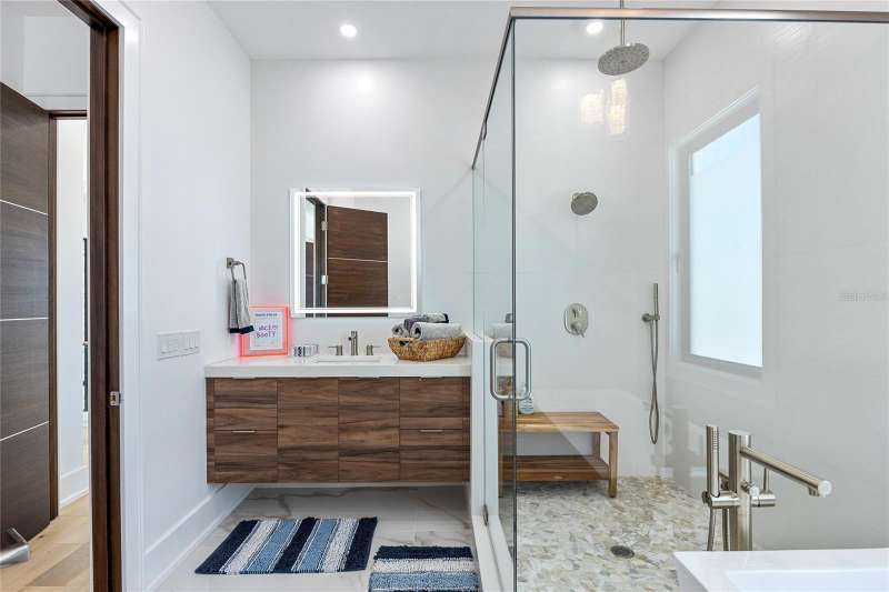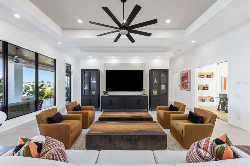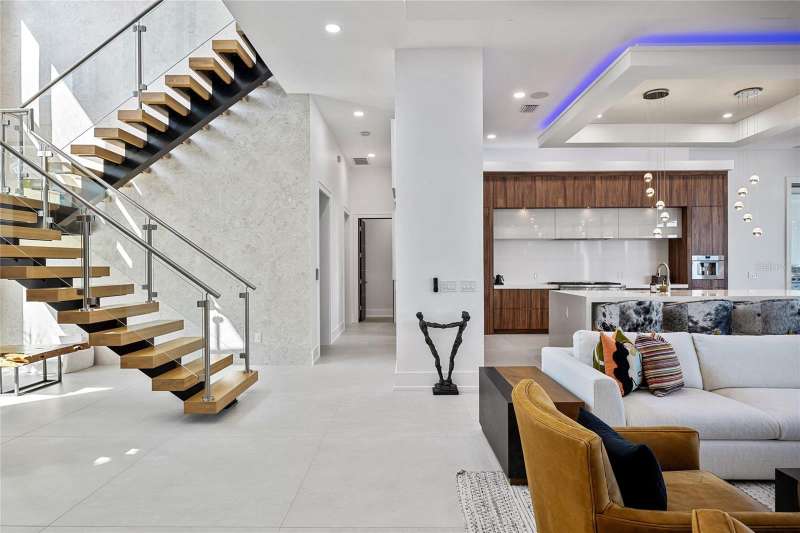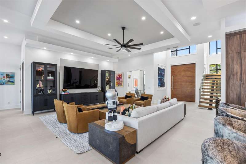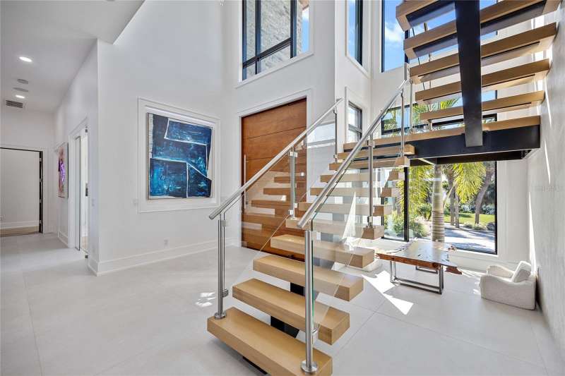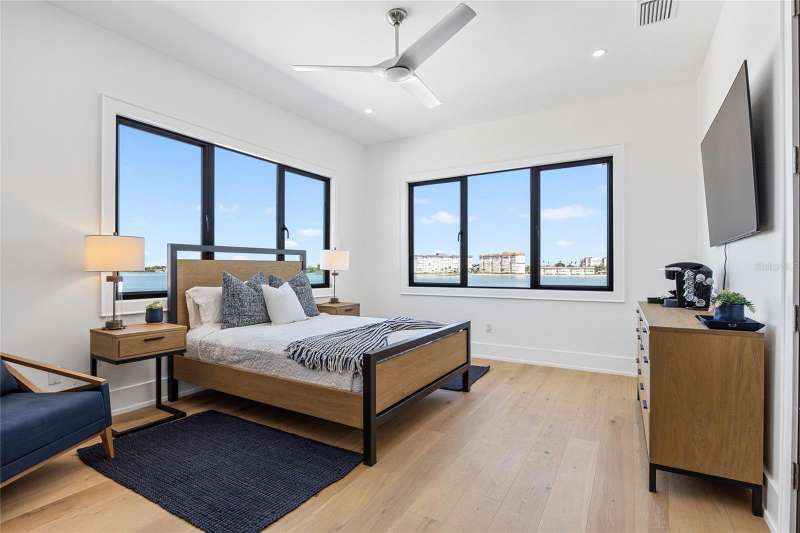 Introducing a Contemporary Waterfront Masterpiece in Tampa Bay. Striking modern architecture and clean, minimalist design come together in this extraordinary custom-built waterfront residence. Completed in 2023, this home makes a bold statement with its commanding curb appeal, soaring 28-foot entry, and dramatic 23-foot foyer. Brilliant natural light, soaring ceilings, and meticulous craftsmanship set the stage for a refined coastal lifestyle. The open-concept floor plan highlights a chef’s dream kitchen with custom cabinetry, pearl-white quartz island, Thermador appliances, gas cooking, full-height wine chiller, and built-in espresso machine, complemented by a discreet butler’s pantry. Expansive living and dining areas open seamlessly to the water, while the executive-style office and designer guest bath add both elegance and function. The owner’s suite is a private sanctuary with breathtaking views, balcony access, dual walk-in closets, and a spa-inspired bath featuring custom vanities, a Jacuzzi soaking tub, and a glass-enclosed multi-head rain shower. Upstairs, two additional en suite bedrooms and a large media room extend to a 330-square-foot covered terrace with commanding views of the bay. Outdoor living is elevated with over 1,200 square feet of covered waterfront terraces, a resort-style pool and spa, outdoor kitchen, and lush landscaping. Waterfront amenities include an updated seawall, large composite dock, kayak/paddleboard launch, boat lift, and mooring capacity for a sizable yacht. Located just ten minutes from downtown St. Petersburg and six minutes from the Gulf beaches, this residence offers an extraordinary blend of serenity and convenience. Nestled within the highly coveted, gated enclave of Bayway Isles, the community is distinguished by its 24/7 guarded security, pristine surroundings, and enduring sense of privacy. This estate is not simply a residence but a testament to vision, artistry, and uncompromising craftsmanship. More than a home—it’s a statement of modern luxury and life without compromise. Arrange your private showing today and experience the pinnacle of waterfront living.