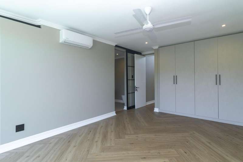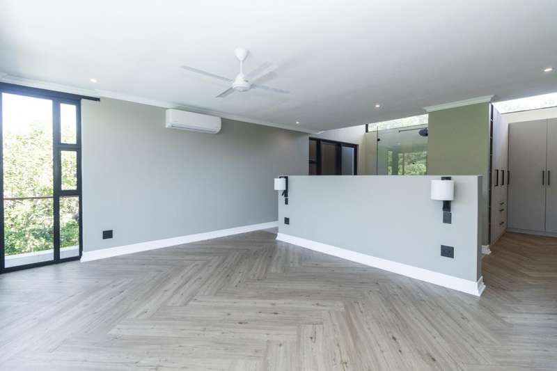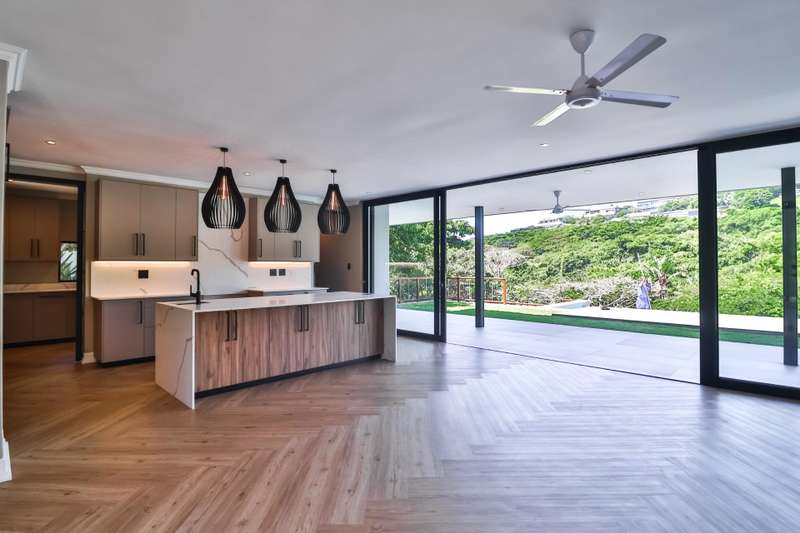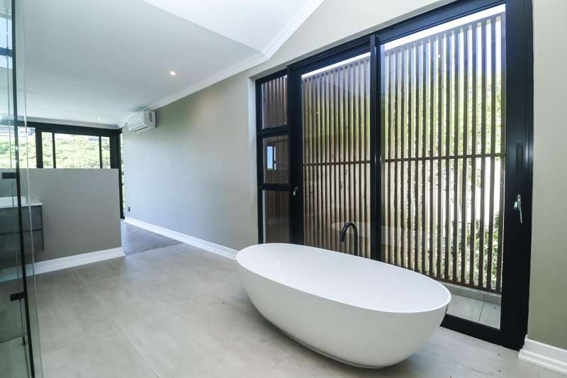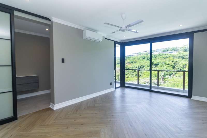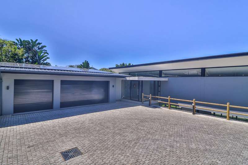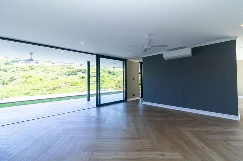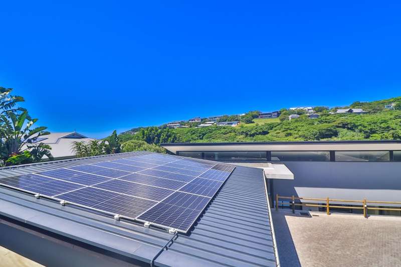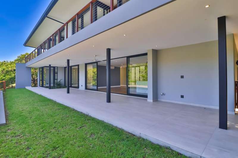 This newly completed five-bedroom masterpiece in Simbithi Golf Estate, offers a seamless blend of modern luxury and natural serenity. Designed with state-of-the-art features, the home has full solar energy and a backup filtered water system. Premium finishes, including exquisite wooden flooring, elegantly appointed bathrooms and a large modern kitchen with marble tops Upon entering, you are welcomed onto the upper level, where a grand staircase leads down to the heart of the home, a breathtaking open-plan kitchen, complete with a large separate scullery. Triple sliding doors connect the kitchen, dining area, and covered patio, offering a seamless indoor-outdoor flow, perfect for entertaining. The entertainment spaces and all five bedrooms are designed to embrace the beauty of the surrounding endless green forest. The expansive private patio sits next to beautiful pool raised above the forest, sunken outdoor seating and a putt putt greet beside the pool. A separate lounge and guest suite downstairs are adjacent to a private courtyard, provides an intimate retreat, Upstairs, four en-suite bedrooms open onto forest facing balconies, with the luxurious main suite featuring a walk-in closet, free-standing bath, and double shower. The home is fully air-conditioned, with ceiling fans throughout. Property is complete with full staff accommodation, and triple garage. Full access to the world class facilities at Simbithi, including golf course, country club with new sports facilities, gym, padel, and community centers